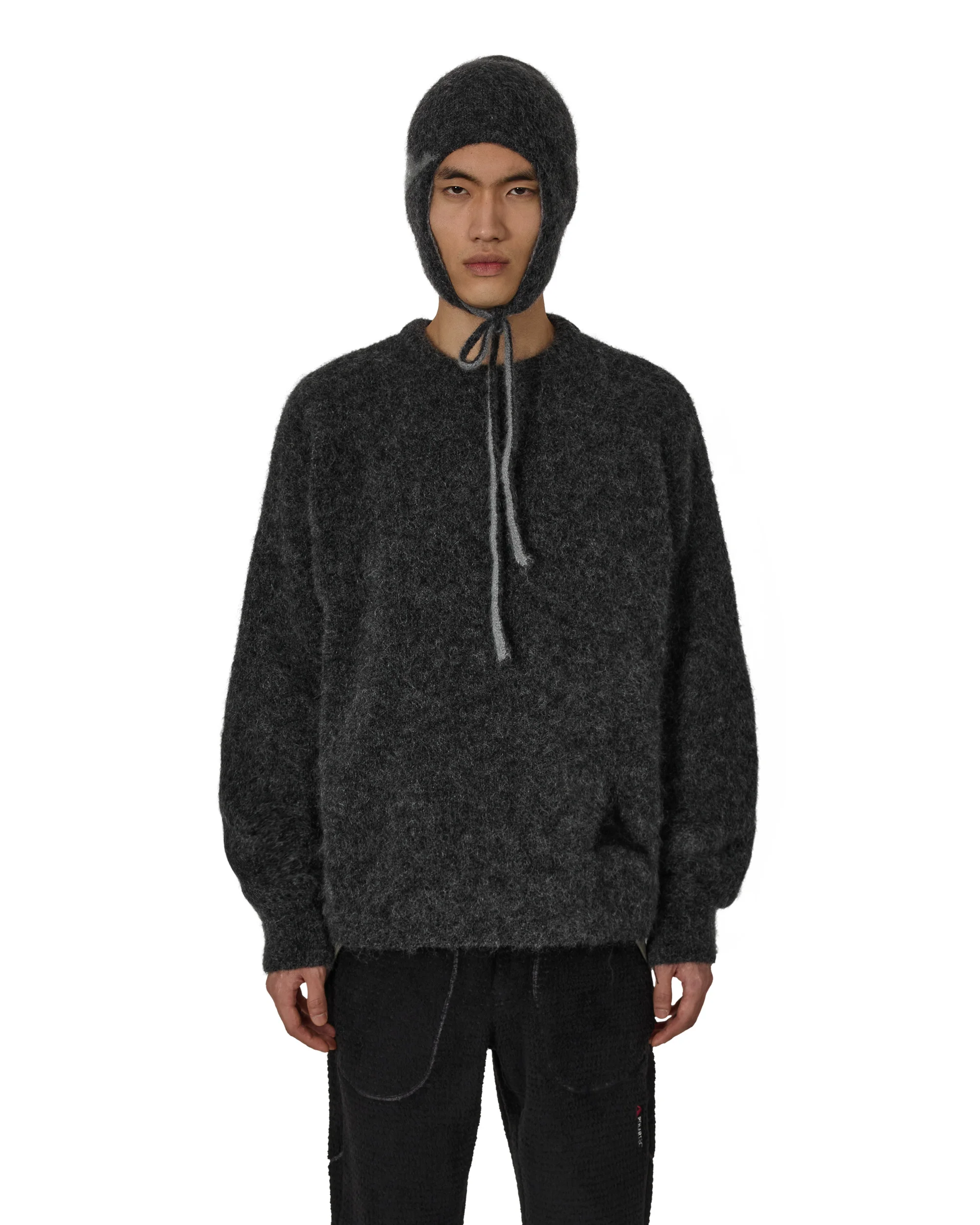 The dropstitch mohair knit crewneck in anthracite color is crafted from luxuriously soft mohair yarn, offering warmth and a lightweight feel. Featuring an oversized fit, the drop-stitch holes on the body and sleeves add a unique, textured design element, complemented by the melange felted texture. The intarsia logo provides a refined detail, making this crewneck a statement piece. Details - Soft mohair yarn Size and Fit Male model is wearing size M and he is 6 ft/1.85m with chest 33in/84cm Composition Self: 50% Supekid Mohair, 32% Polyamide, 18% Virgin Wool Made In Italy