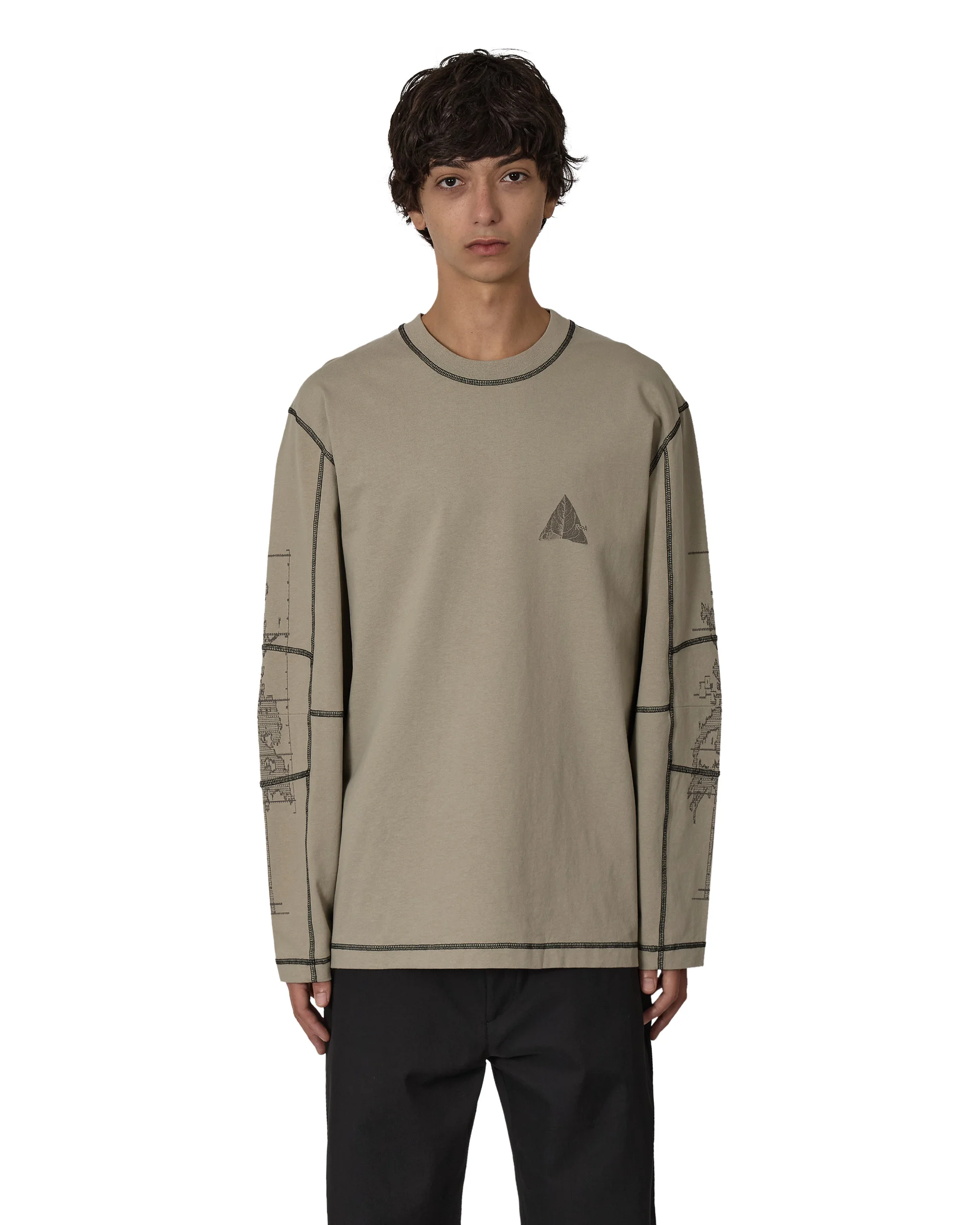 Long sleeve graphic tee made of heavy-weight organic cotton jersey, pale green color. Printed contrasting design on the front, and printed design on the back in bungee cord color. Ribbed collar. Details - Heavy-weight organic cotton jersey Size and Fit Male model is wearing size M and he is 6,1 ft/1.86m with chest 34.2in/85cm Composition Self: 100% Cotton Made In Portugal