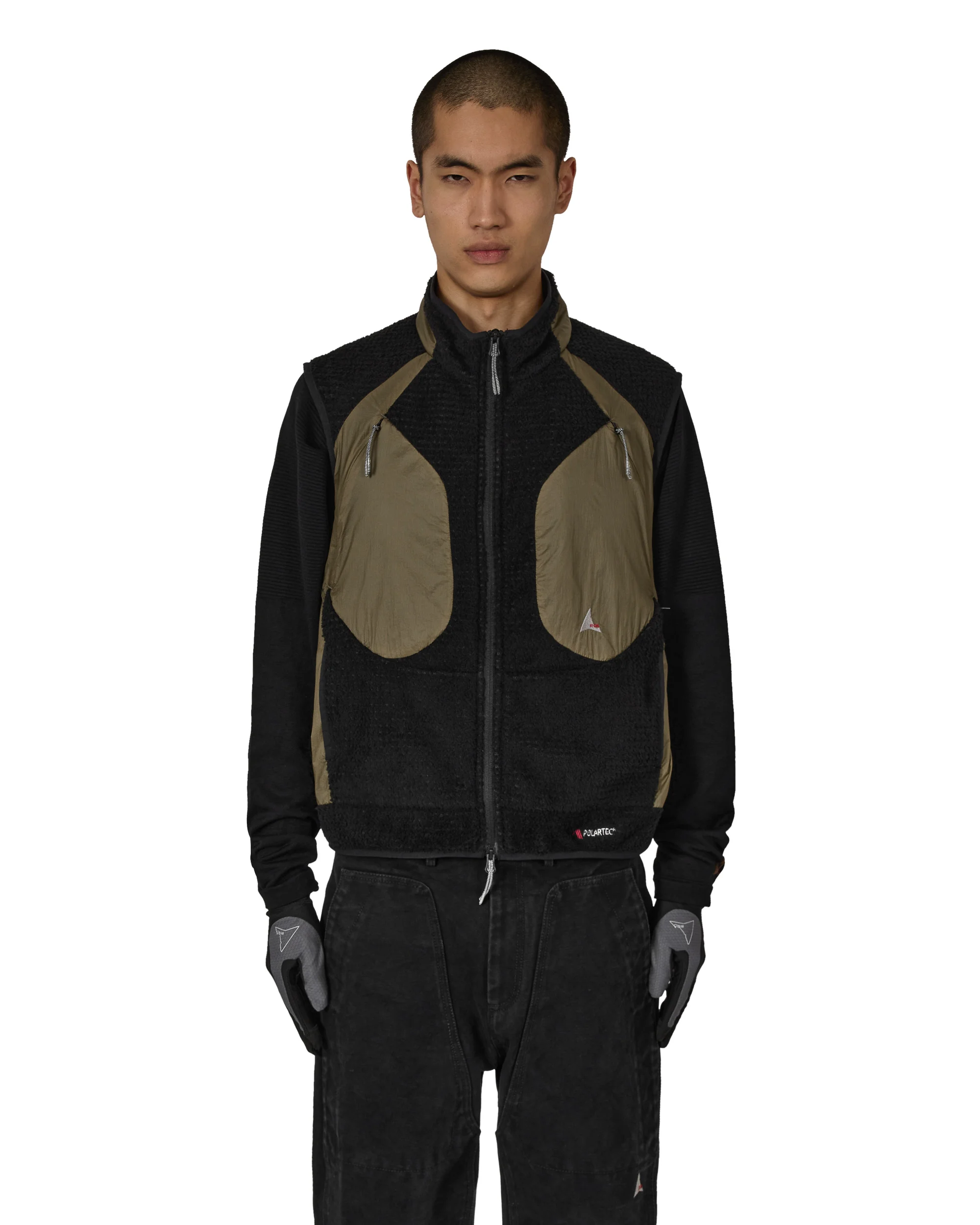 The Ocular Polartec® High Loft™ vest in black olive color is crafted from Polartec High Loft fabric combined with durable 10D ripstop nylon for lightweight warmth and resistance to wear. Polartec High Loft technology provides exceptional thermal efficiency while remaining highly breathable and compressible. Designed with a zipped chest pocket and easy-access front low pocketing for convenient storage, the vest is finished with embroidered Polartec® and ROA logos. Details - Polartec High Loft fabric - Durable 10D ripstop nylon Size and Fit Male model is wearing size M and he is 6 ft/1.85m with chest 33in/84cm Composition Self: 100% Polyester Contrast: 89% Polyamide, 11% Elastane Made In Vietnam