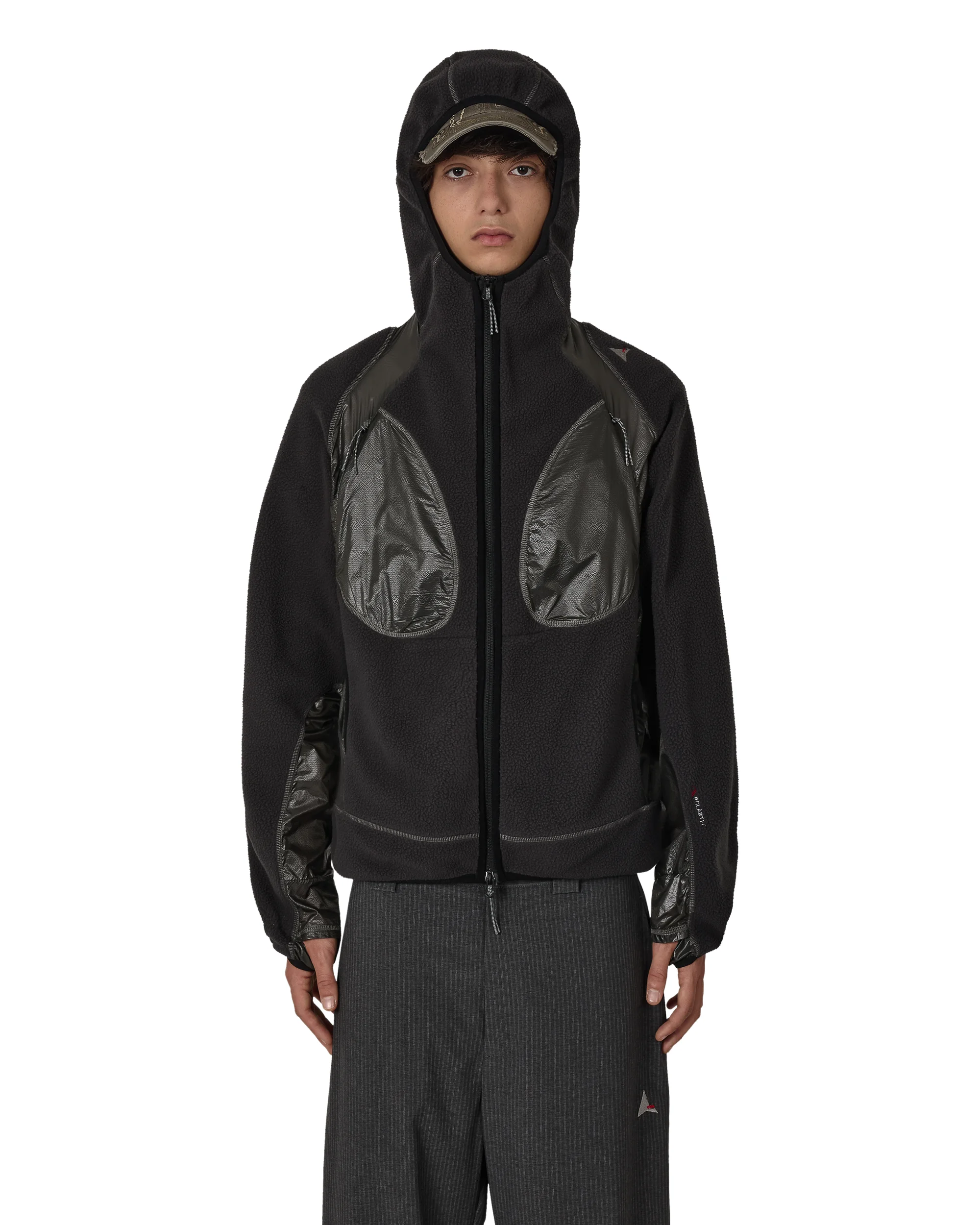 The OCULAR Polartec® Thermal Pro™ Zip Up Hoodie is a hooded fleece jacket in black, made with 100% recycled Polartec® Thermal Pro™ fabric. It features 10D micro ripstop nylon detailing on the side panels, sleeves, and chest pocket. The jacket includes a zippered chest pocket, elastic binding on the hood, cuffs, and hem for a secure fit, and thumbholes at the cuffs for added functionality. Designed for a comfortable fit, it is finished with a double zip front with reflective ROA cord pullers, an embroidered ROA logo on the shoulder, and a Polartec logo on the sleeve. Details - 100% recycled Polartec® Thermal Pro™ fleece - 10D micro ripstop nylon on side panels, sleeves, and chest pocket - Double zip front with reflective ROA cord pullers - Fully bound hood, cuffs, and hem with elastic trim - Zippered chest pocket - Thumbholes at sleeve cuffs Composition SELF: 100% Polyester INSERT: 100% Polyamide Made In China