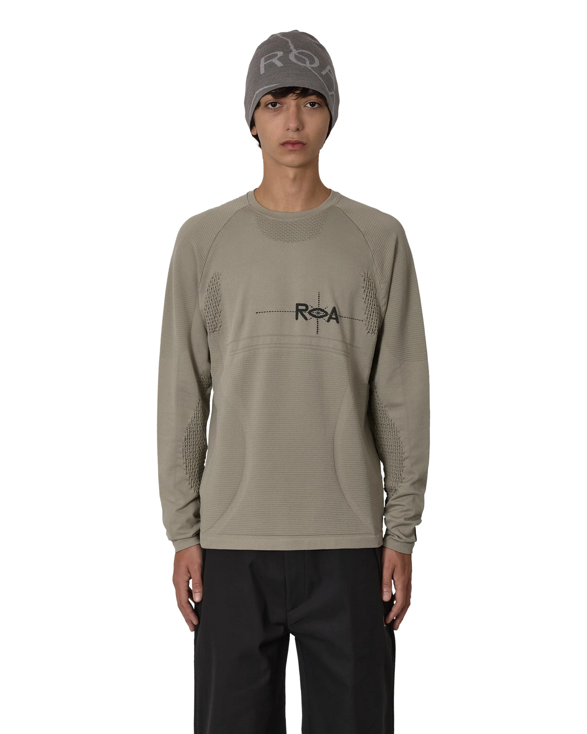 Long sleeve Seamless graphic sweater in pale green color made of polyamide SENSIL® Breeze, a soft, low-bulk, lightweight fabric that provides a sense of being cool, dry, and comfortable. Its advanced technical design, which includes a contrasting knit, ensures efficient cooling effect, heat release, and UV protection. Made in Italy. Details - SENSIL® Breeze fabric Size and Fit Male model is wearing size M and he is 6 ft/1.85m with chest 33in/84cm Composition Self: 95% Polyamide, 5% Elastane Made In Italy
