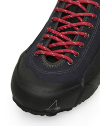 ROA’s Tuff in dark blue color is a rugged vulcanized shoe built for performance in unpredictable weather. Its upper is crafted from Ventile®—a premium 100% cotton fabric developed for extreme conditions—known for its natural breathability, water repellency, and long-term durability. The fabric is densely woven to offer total protection from wind, rain, sleet, and snow, while maintaining a balanced internal climate. Covered in a protective rubber coating and paired with a vulcanized rubber sole, the Tuff offers enhanced grip and resilience for both urban and outdoor environments. The shoe remains lightweight and flexible for daily comfort, with a long lacing system to ensure a secure, adaptive fit. Details - Waterproof Ventile® cotton upper - Rubber-coated exterior for added weather protection - Vulcanized rubber sole with high-grip tread design - Lightweight and flexible construction - Highly breathable and temperature-regulating - Long lacing system for customizable fit - Jacquard ROA logo on tongue - Durable and aging-resistant materials Composition UPPER: 90% Cotton, 10% Rubber SOLE: 100% Rubber Made In China