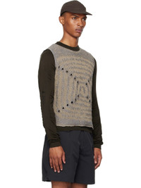 Knit and reverse-knit hemp-blend vest. Pattern throughout. · Round neck · Open-knit detailing at front Supplier color: Beige grey 55% hemp, 45% cotton. Made in Italy 251204M185002