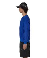The Wama 3D Seamless Long Sleeve in blue color is a technical base layer engineered for performance and comfort. Constructed using an innovative blend of Dryarn® by Aquafil, wool, polyester, and elastane, it offers superior thermal regulation with minimal weight. The advanced 3D seamless knitting technique creates a textured, body-mapped structure that enhances mobility and breathability while minimizing friction. Elasticated cuffs and hem to ensure a close, stable fit. Details - Lightweight Dryarn® blend with natural wool insulation - Seamless 3D knitting for frictionless comfort - All-over textured pattern for ventilation and support - Elasticated cuffs and hem for secure fit - Round neck design with stretch recovery Size and Fit Male Model is 6ft/1.82m with 34"/87cm chest and wears size M. Composition SELF: 45% Polypropilene, 30% Merino Wool, 22% Polyamide, 3% Elastane Made In Italy