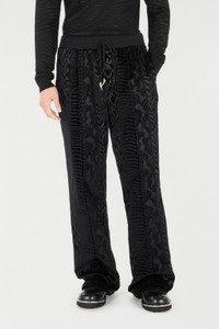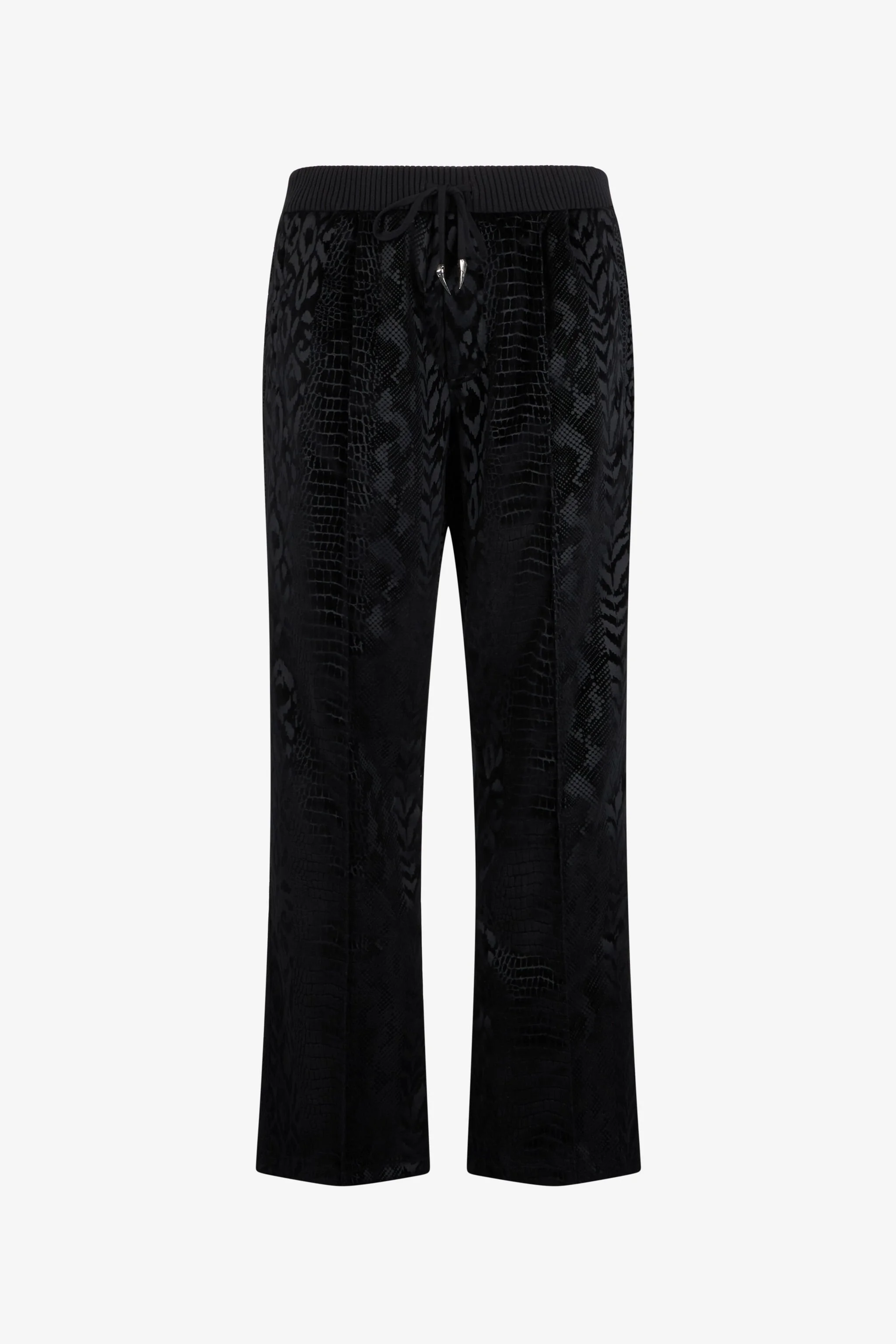 ID: URT25Y-CJ007-05051 The world of animal motifs, an endless source of inspiration for Roberto Cavalli, is fully expressed in these minimalist design pants, featuring an intriguing mix of Python, Jaguar Skin, and Tiger Skin patterns in tonal shades, with an adjustable drawstring waist enhanced with metallic aglets shaped like the iconic tiger Fang. Details - Pure cotton pants - Alternating Python, Jaguar Skin, and Tiger Skin patterns in tonal shades - Front pleat - Rib-knit waist - Drawstring waist with metallic Fang-shaped aglets Care & maintenance External fabric:100% Cotton / Lining:100% Cotton
