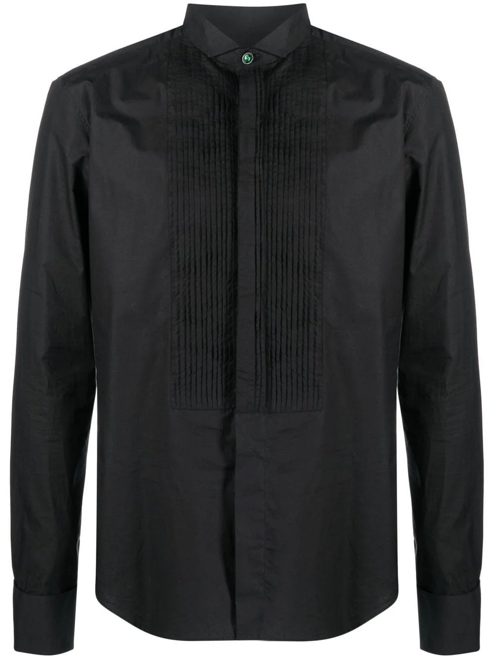 bib-collar long-sleeved shirt black cotton pleat detailing bib collar front button fastening stand-up collar long sleeves buttoned cuffs curved hem Made in Italy Composition Cotton 100% SIZE & FIT Model measurements Height 6 ft 2 in(1.88 m) Bust/Chest 35.03 in(89 cm) Hips 35.82 in(91 cm) Waist 27.95 in(71 cm) FittingInformation This piece fits true to size. We recommend you get your regular size Cut for a slim fit Made with a mid-weight non-stretch fabric Washing instructions Dry Clean Only
