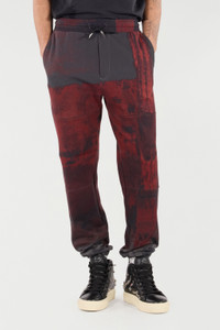 ID: VNT25B-FOP69-D2461 With these pants featuring an essential design, Roberto Cavalli presents a true wardrobe staple for men, distinguished by a mottled-effect print with contrasting all-over discoloration. The elasticated waist and hem give immediate comfort, while the RC monogram on the back pocket and the drawstring with metallic aglets in the shape of the iconic tiger Fang pay tribute to the Maison's DNA. The two convenient side pockets complete the style. Details - Pure cotton pants - Mottled-effect print - Fine-rib knit at the waist - Side pockets - Comfortable fit - Adjustable waistband with drawstring and Fang aglets - Elasticated hem - RC monogram on the back patch pocket