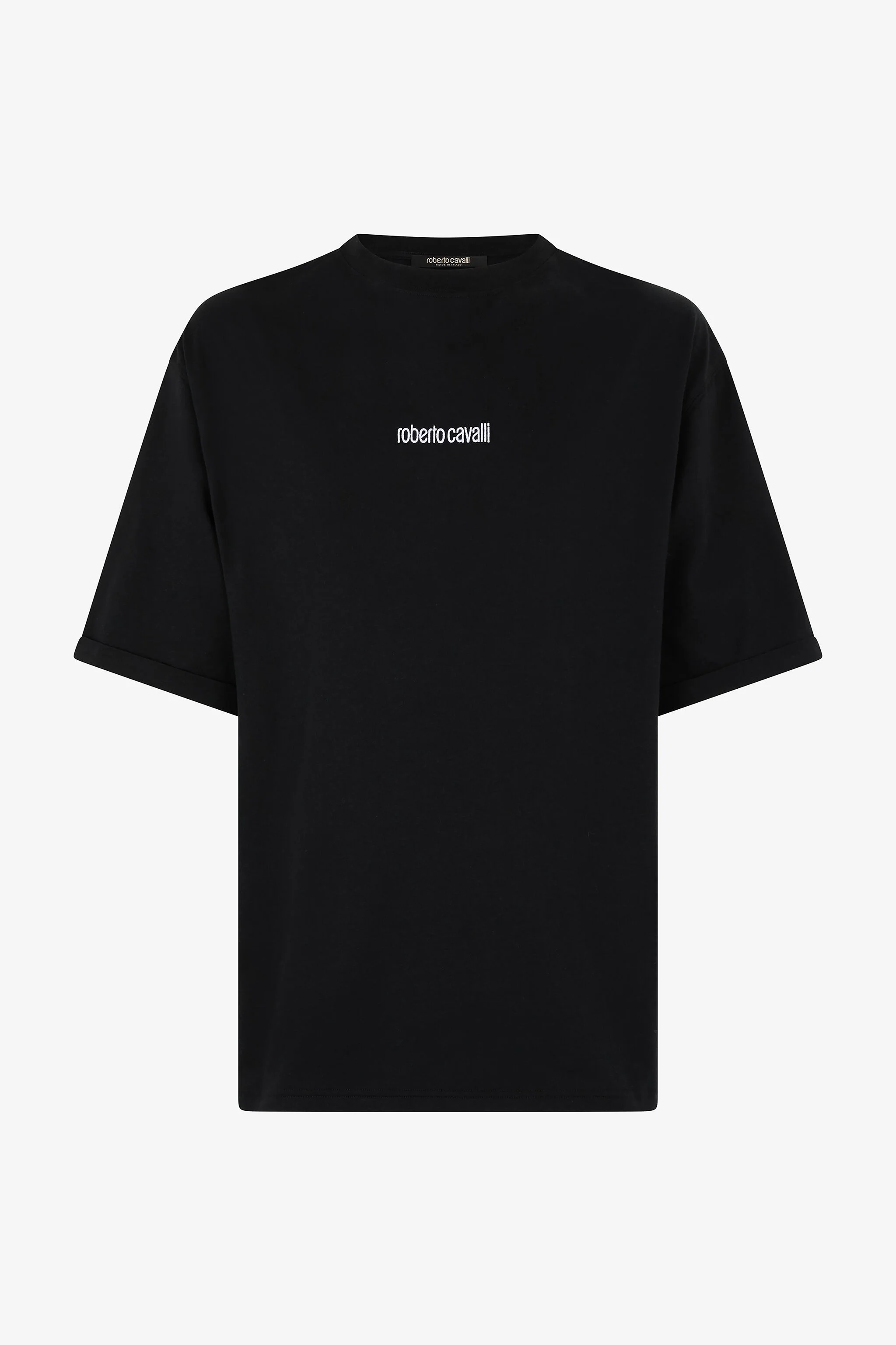 ID: VRT62E-JD060-05051 Two fierce tigers in a fighting pose are featured on the back of this pure cotton T-shirt, an authentic expression of the power of the feline world that has always fascinated the brand. This garment, ready to elevate any everyday outfit, is completed by the emblematic Roberto Cavalli logo that stands out on the chest. Details - Pure cotton T-shirt - Crew-neck - Half sleeves with dropped shoulders - Roberto Cavalli Logo on the chest - Maxi tigers embroidered on back - Roberto Cavalli label on the inside collar - Made in Italy