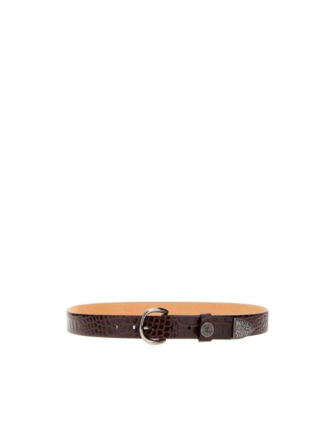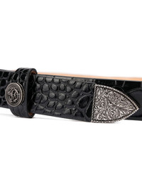 crocodile-embossed logo belt Highlights - Black - Crocodile embossing - Logo detail - Silver-tone buckle - Ornate tip - Leather construction Made in Italy Composition Bos Taurus 100%