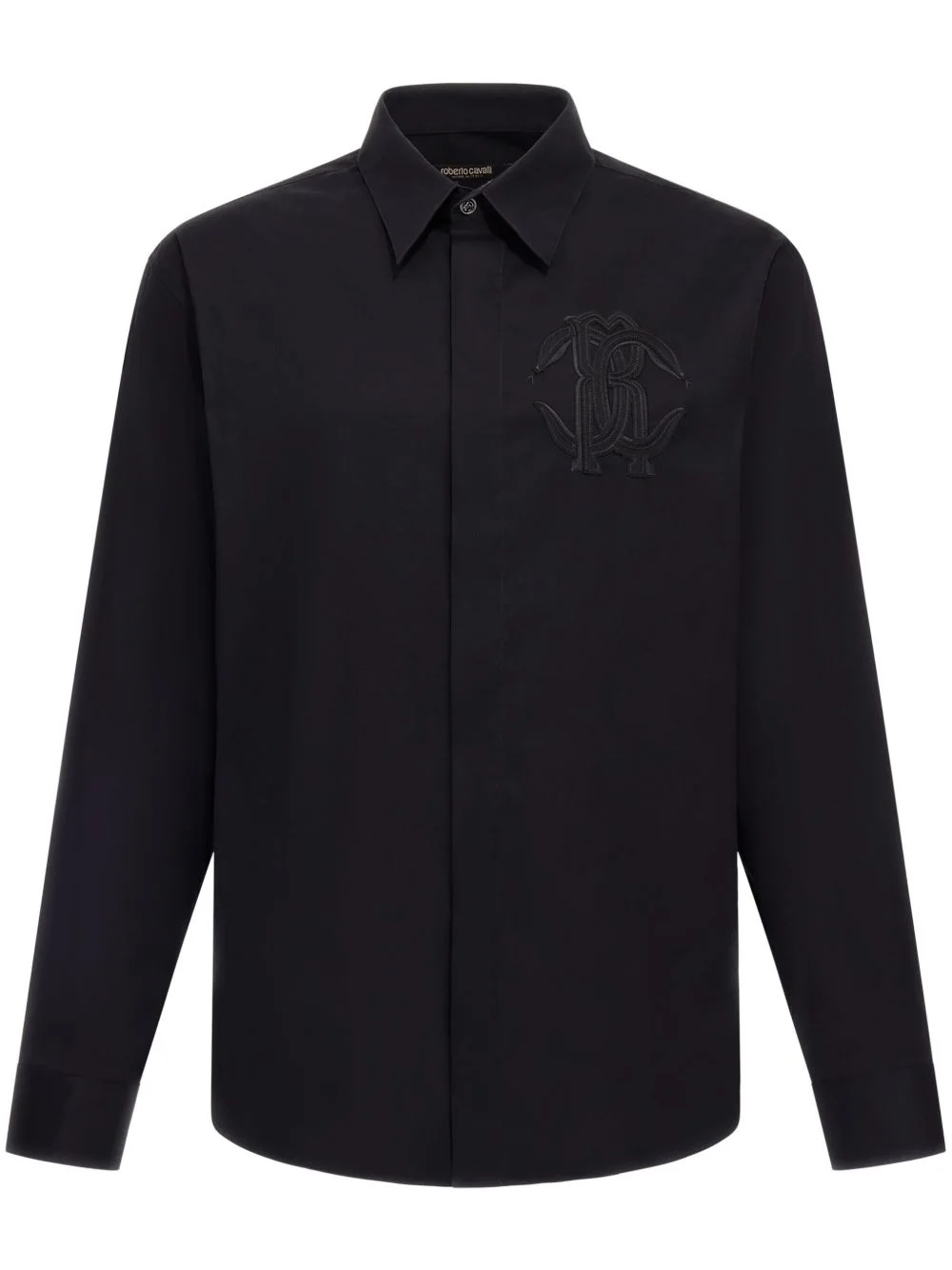 embroidered-logo shirt Highlights - Black - Cotton blend - Embroidered logo at the chest - Front button fastening - Classic collar - Long sleeves - Buttoned cuffs - Curved hem Made in Italy Composition Cotton 79%, Polybutylene Terephthalate (PBT) 18%, Elastane 3%