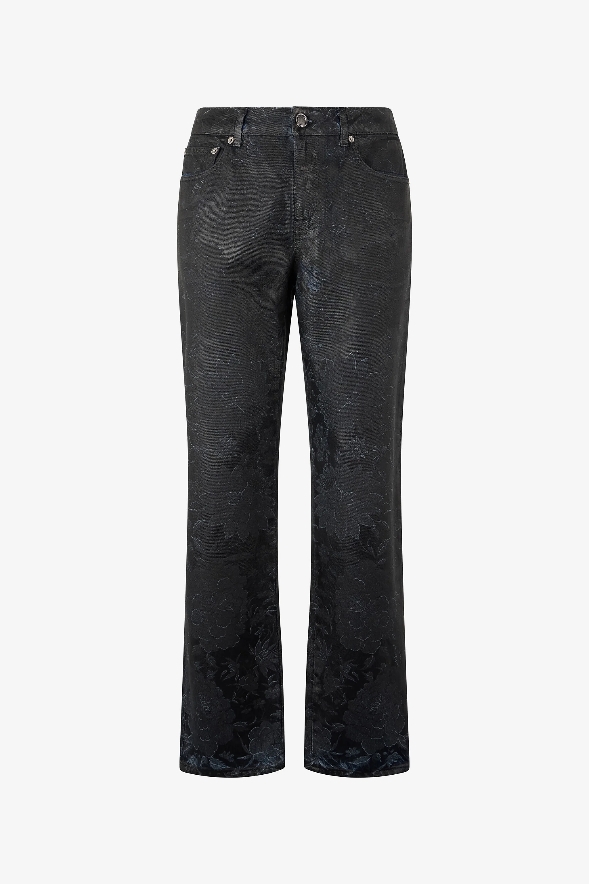 ID: VNJ201-VT035-05051 An emblem of casual and contemporary luxury, these pure cotton jeans from Roberto Cavalli flaunt the brand’s must-have details. The model stands out for its practical and timeless five-pocket design and for its original floral motif with bleached-effect edging, an expression of a bold style that makes no compromises. The garment is further embellished by references to the brand's universe, such as the metal button with snake and the unmistakable branded tag with Fang details on the back. Details - Pure cotton denim jeans - All-over floral pattern with a bleached effect - Straight leg - Five-pocket design - Zipper and branded button with snake fastening - Branded tag with Fang details on the back