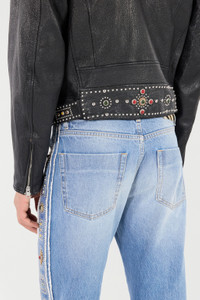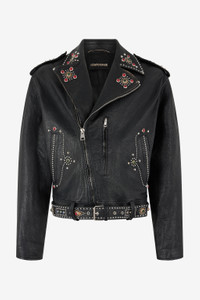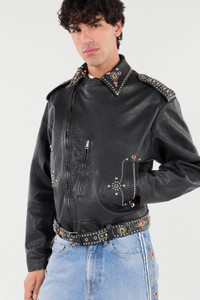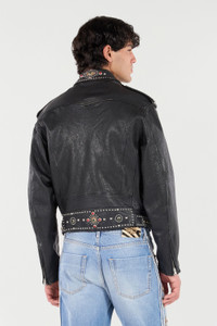 Leather Biker Jacket with Studs and Stones