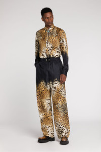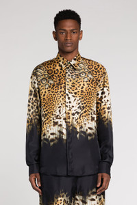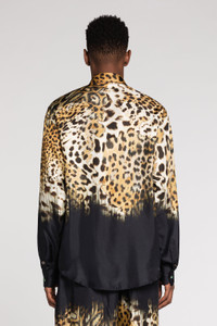 ID: RRT715-2N411-05051 A scattering of leopard spots fades into a solid black background, lending this shirt a hallmark Cavalli finish. It's crafted in Italy from pure silk to a clean-line silhouette with a gemstone-embellished top button. Details - Leopard-Print Silk Shirt - Point collar - Long sleeves with button cuffs - Concealed button front fastening - Made in Italy Care & maintenance External fabric:100% Silk