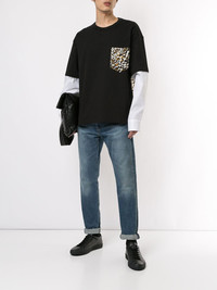 leopard print panel T-shirt Founded in Florence in the early 1970s, eponymous label Roberto Cavalli has become an internationally celebrated fashion-house synonymous with elegance and glamour. Case in point: this black cotton leopard print panel T-shirt. Featuring a round neck, a chest pocket, long shirt style sleeves and a leopard print panel on the back. Made in Italy Composition Cotton 100% Washing instructions Dry Clean Only