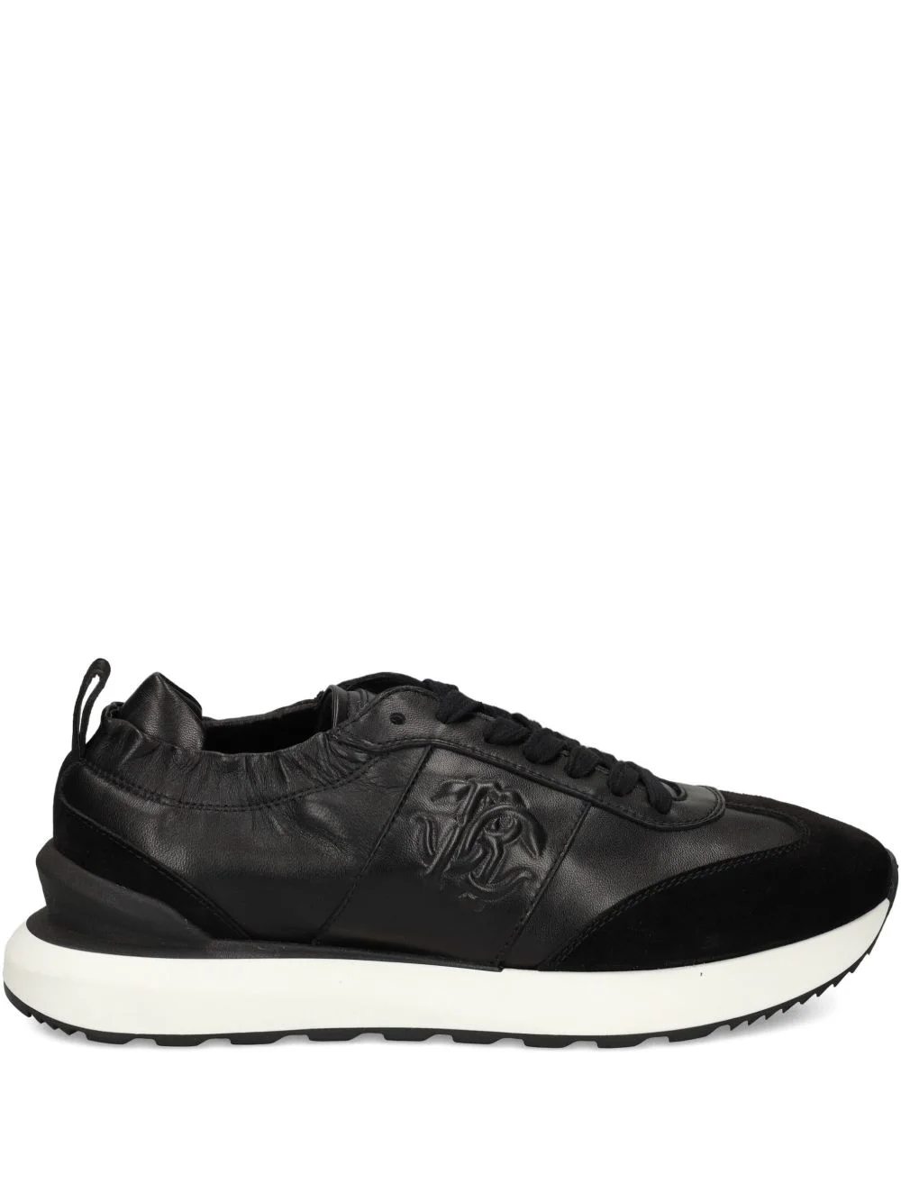 logo-embossed panelled sneakers Highlights - Black - Panelled design - Logo embellishment - Pull-tab at the heel - Front lace-up fastening - Ridged sole Made in Italy Composition Lining: Calf Leather 100% Sole: Rubber 100% Outer: Calf Leather 100%