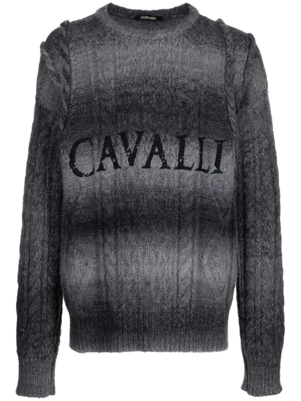 logo-print knit jumper ash grey mohair-alpaca blend ribbed detailing logo print to the front round neck long sleeves straight hem Made in Italy Composition Mohair 35%, Alpaca 35%, Polyamide 30% Washing instructions Dry Clean Only