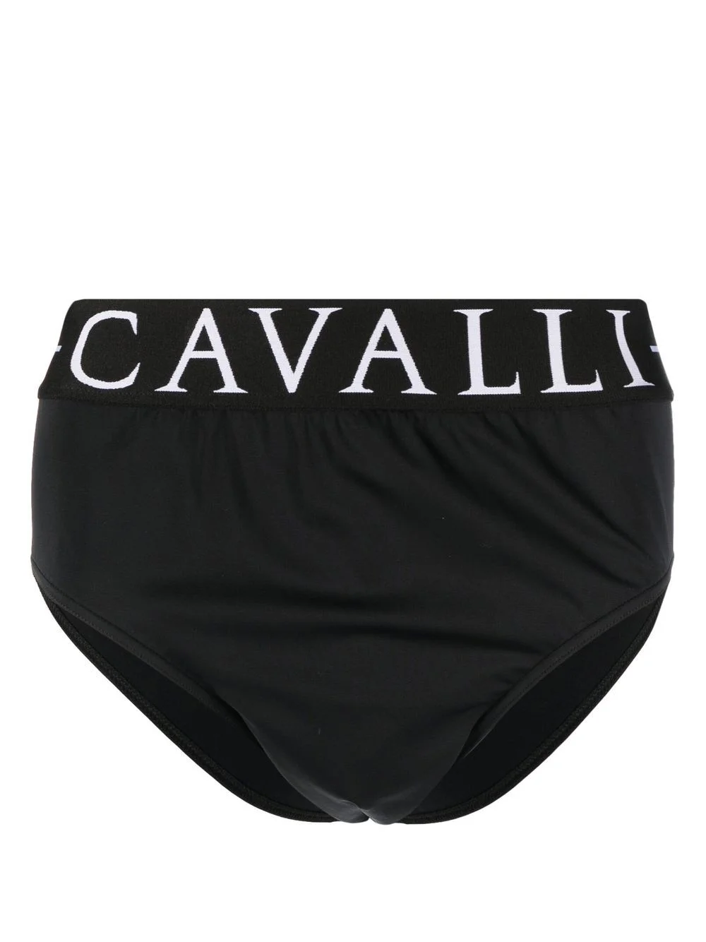 logo-print swimming trunks Showcasing a more minimalistic side and its penchant for logomania, Roberto Cavalli adds a printed logo to the waistband of these black-hued swimming trunks. Made in Italy Composition Polyester 89%, Elastane 11%