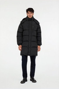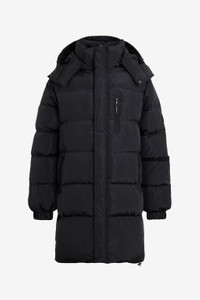 Long black down jacket with hood