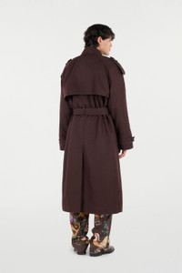 ID: VRT531-FN071-01660 Roberto Cavalli revisits a classic in the men's wardrobe: the long trench coat. This pure cotton garment features a classic design consisting of details such as the shoulder adjusters, windproof flap, detached yoke at the back, waist belt and wrist straps, and features a contrasting soft faux shearling interior. Details - Pure cotton long trench coat - Faux shearling interior - Pointed collar - Classic lapel top opening - Long sleeves - Straps with buckles at the wrists - Adjustment straps on the shoulders with braided buttons - Windproof flap - Two side pockets - Belt with buckle at the waist - Detached yoke at the back - Back vent - Double-breasted fastening with braided buttons