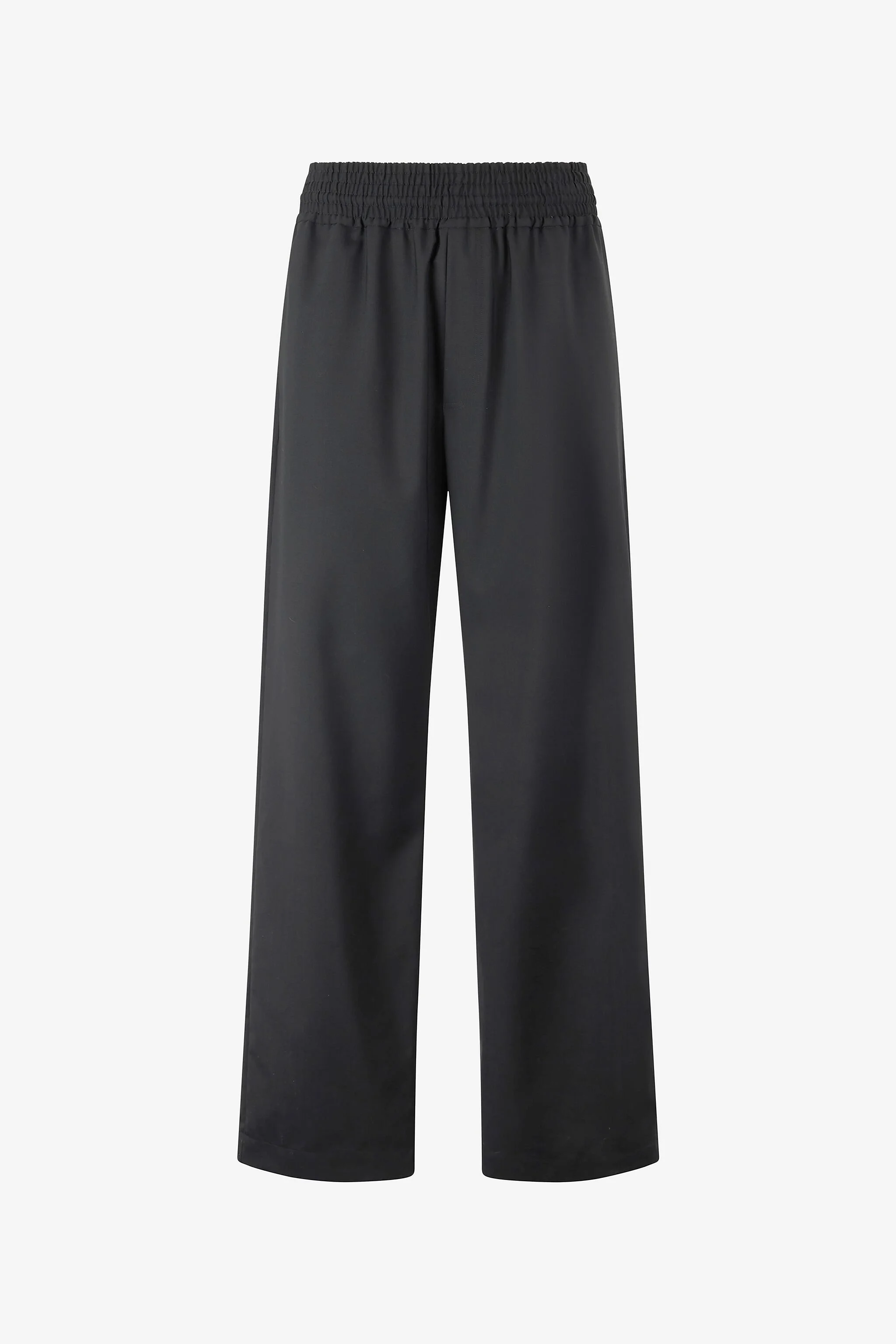 ID: VNT267-VW003-05051 The perfect combination of elegance and comfort, these virgin wool pants by Roberto Cavalli are an authentic men's wardrobe staple. This style with a clean and simple design is enriched by the branded label on the back pocket and a comfortable elasticated waist. Details - Virgin wool pants - Loose fit - Comfortable elasticated waistband - Welt side pockets - Branded label on the back patch pocket