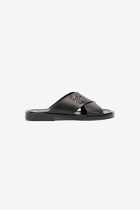 ID: URS021-PZA90-D2280 The metallic Mirror Snake Monogram detail pays tribute to Roberto Cavalli's DNA and enhances these slides, defined by a minimalist yet elegant design featuring two crossed bands. This model, made entirely in Italy of real leather, is further enhanced by the Roberto Cavalli logo on the insole. Details - Leather sliders - Upper with crossed bands - Metal Mirror Snake Monogram on the top band - Roberto Cavalli logo on the insole - Made in Italy