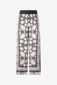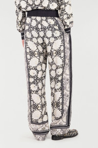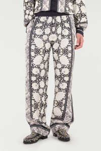 ID: VNT266-4QP93-D0477 An elegant all-over floral print enhances these pure silk pants by Roberto Cavalli, perfectly combining versatility with contemporary luxury. An explosion of prints and patterns characterizes this fluid and extra-long style, where a vibrant floral print is combined with an extravagant baroque-inspired pattern along the side bands. This garment features two practical side pockets and is complemented by a comfortable elasticated waist. Details - Pure silk pants - Loose fit with long, relaxed leg - All-over floral print - Contrasting side bands - Comfortable elasticated waistband - Welt side pockets