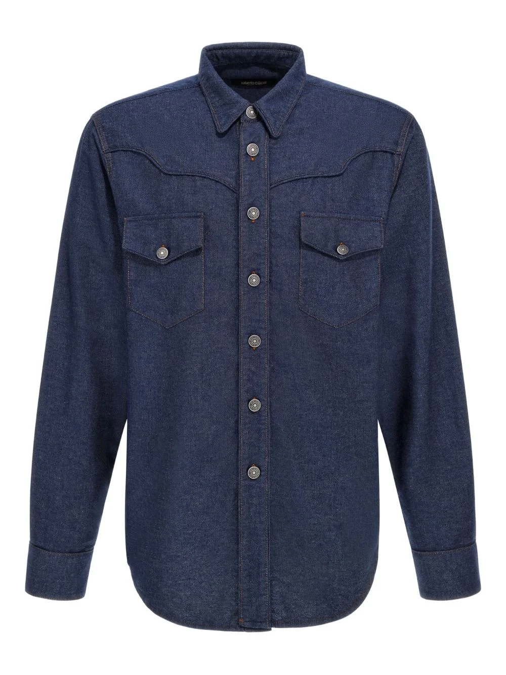 pocket jeans shirt Highlights - Dark blue - Button fastening - Chest pockets - Long sleeves - Buttoned cuffs Made In Italy Composition Cotton 68%, Polyester 32% Washing instructions Read Manufacturer Guidelines
