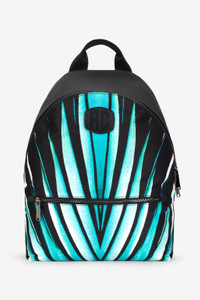ID: VRB004-PZY02-T0048 Immerse yourself in the vibrant energy of the Ray of Sea print, captured on this striking backpack. The dynamic turquoise and white motif bursts against the sleek black background, creating a captivating visual contrast. Finished with a subtle leather RC logo patch, this backpack is a bold expression of contemporary luxury, designed for those who carry style with confidence. Details - Ray of Sea print backpack - Features leather RC logo patch detail - Main compartment with zip closure - Exterior front zip pocket - Top carry handle - Adjustable shoulder straps - Perfect for adding a vibrant touch to everyday looks - Complement with other Ray of Sea print items for a coordinated ensemble - Made in Italy Care & maintenance Leather - Fur:Bos Taurus / External fabric:95% Polyester, 5% Polyurethane / Secondary fabric:90% Polybutylene terephthalate, 10% Acrylic / Lining:100% Cotton
