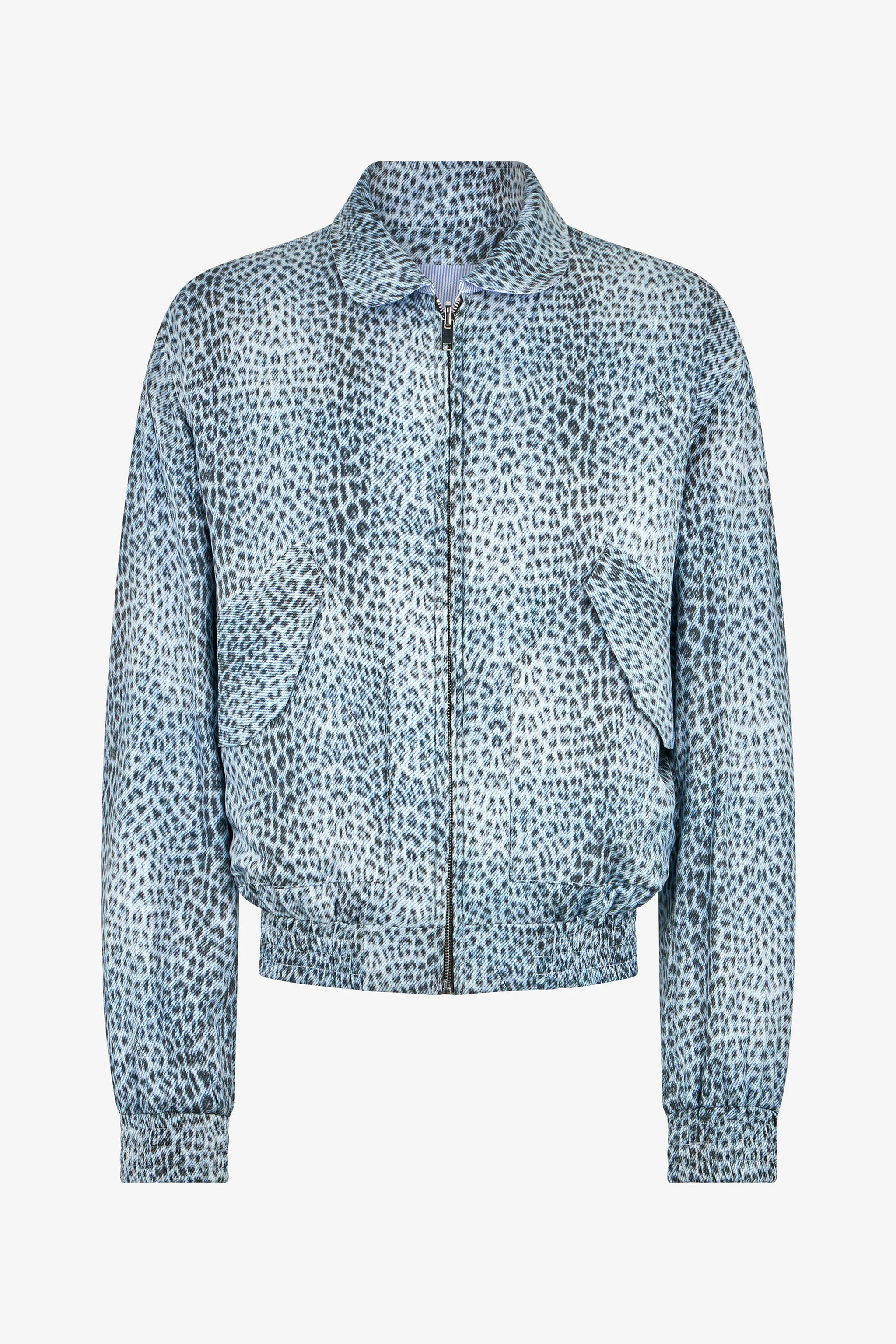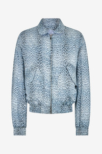 ID: WNT403-4QR31-04513 This reversible bomber jacket with Baby Jaguar print and striped lining embodies bold, refined elegance. Its cocooning silhouette is enhanced by sophisticated details that give it a truly unique character. The perfect piece for those who want to express their personality through a distinctive, impeccably stylish look. Details - Blue animal print, refined yet bold - Figure-hugging silhouette, timeless style - Sophisticated details, a unique and distinctive character - Bomber jacket, modern elegance - Perfect for polished, standout looks