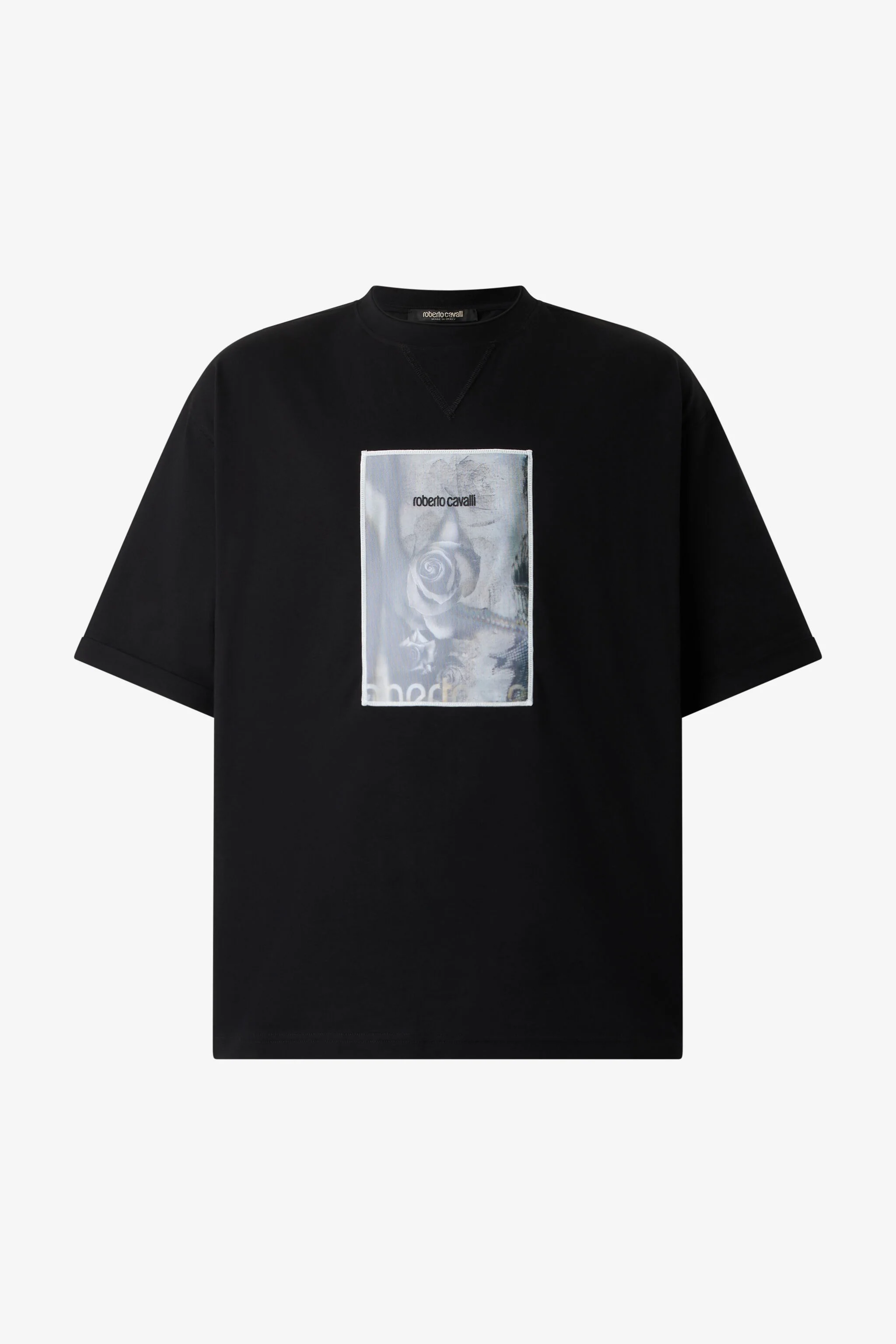 ID: URT62Q-KB031-05051 Roberto Cavalli never ceases to reinvent its distinctive codes, and expresses them in this T-shirt with a minimalist cut, decorated on the front by a photographic print with vintage-effect roses accompanied by the brand logo, to give a touch of retro elegance to your everyday looks. Details - Pure cotton T-shirt - Roberto Cavalli label on the inside collar - Crew neck - Half sleeves with dropped shoulders - Triangular sweatshirt-style insert on the front - Made in Italy Care & maintenance External fabric:100% Cotton