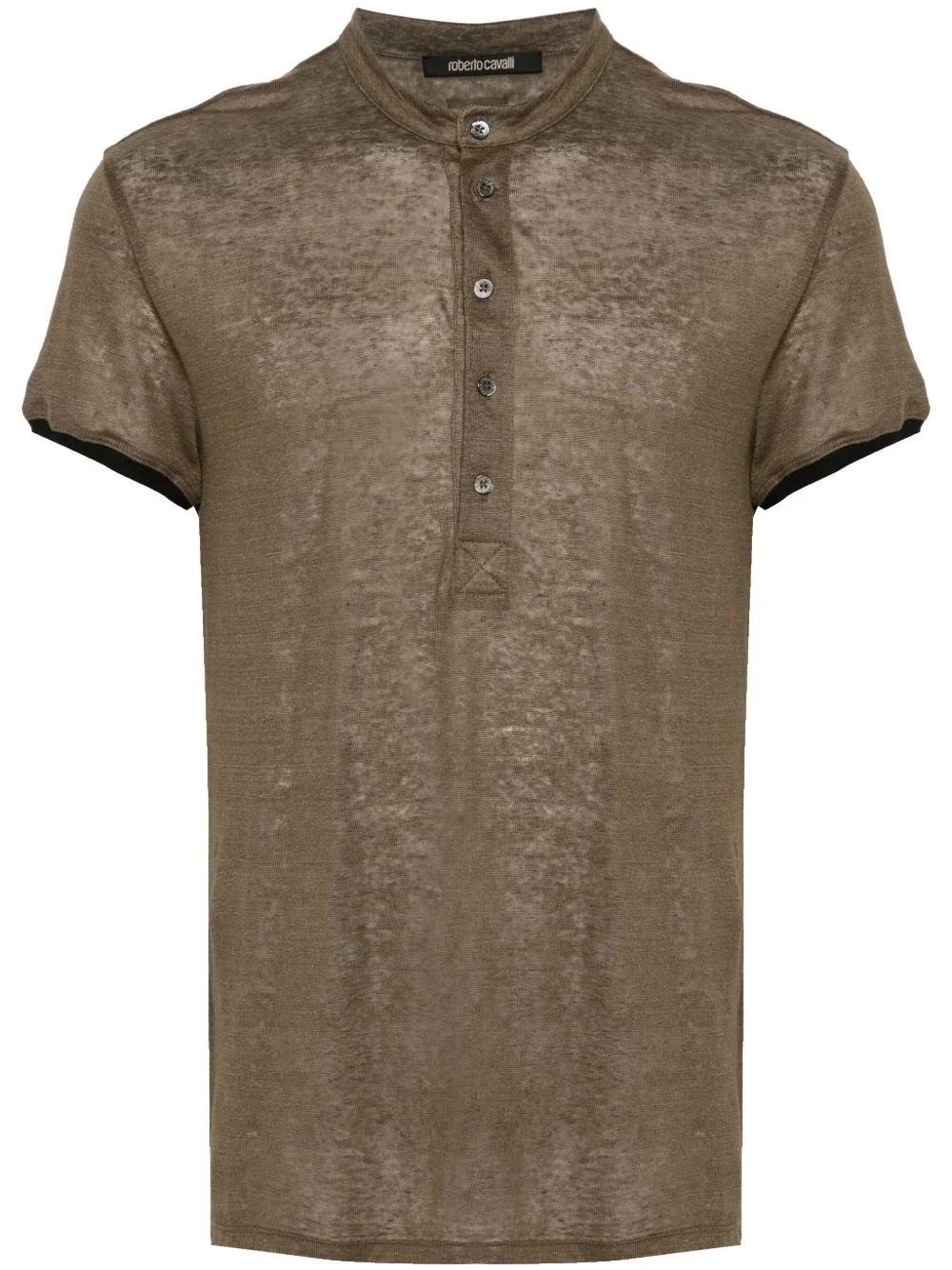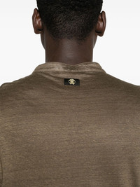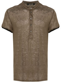 semi-sheer cotton polo shirt Highlights - Khaki/black - Cotton - Slub texture - Semi-sheer construction - Logo patch to the rear - Band collar - Front button placket - Short sleeves - Contrasting ribbed cuffs - Straight hem Made in Italy Composition Cotton 100% SIZE & FIT Model measurements Height 6 ft 2 in(1.87 m) Bust/Chest 36.41 in(92.5 cm) Hips 37 in(94 cm) Waist 29.52 in(75 cm) FittingInformation Designed for a relaxed fit, this polo shirt offers comfort and movement Made with a lightweight knit, this piece offers some stretch This piece fits true to size – take your usual size