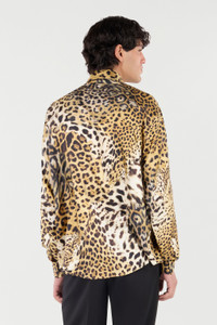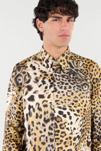 ID: VRT710-OZG34-00504 This long-sleeved shirt by Roberto Cavalli, entirely made in Italy in pure silk, features an innovative all-over spotted pattern inspired by the coats of various big cats. Details - Pure silk shirt - All-over leopard print pattern - Small Roberto Cavalli signatures on the surface - Pointed collar - Long sleeves - Cuffs with buttons - Straight hem - Concealed front fastening with exposed top button - Roberto Cavalli label on the inside collar - Made in Italy
