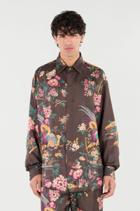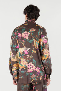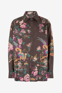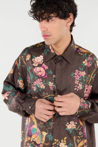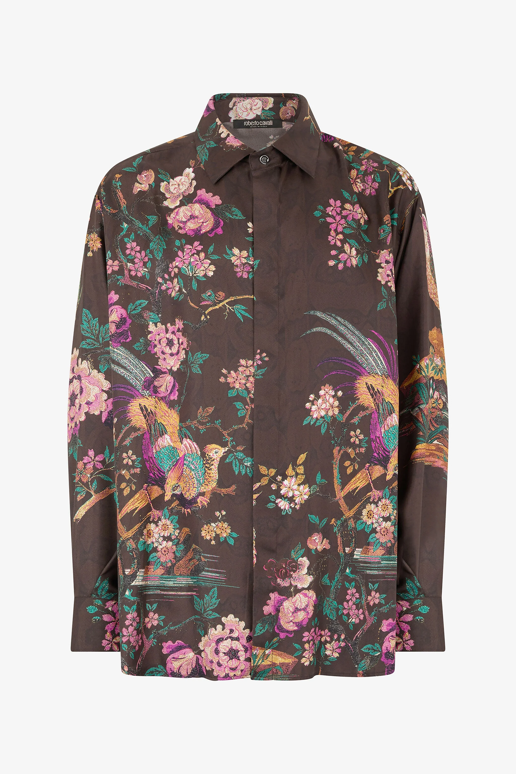 ID: VRT721-OZP76-ZO047 The iconic Python pattern in monochrome is the backdrop to a refined Oriental BIrd print, the undisputed star of this pure silk shirt by Roberto Cavalli, which will give a touch of bold elegance to all your looks. The design is completed by the branded snake buttons on the hidden front fastening and on the cuffs, for a tribute to the Maison's distinctive style and the charm of the reptile universe. Details - Pure silk shirt - All-over Oriental Bird print - Monochrome Python pattern in the background - Pointed collar - Long sleeves - Branded button with snake on the hidden front fastening and on the cuffs - Roberto Cavalli label on the inside collar - Made in Italy