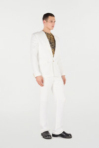ID: URT410-HS003-00052 This single-breasted blazer from Roberto Cavalli features a classic and refined design with peak lapels and two flap pockets on the front. This piece, an authentic menswear must-have, is embellished with a touch of the brand’s quintessential feline elegance, expressed by the iconic tonal Jaguar Skin print on the lining. Details - Single-breasted one-button blazer - Inner lining with matching Jaguar Skin print - Long sleeves - Peak lapels - Two front pockets with flap - Cuffs with buttons, one of which is branded - Inner hanger loop - Back vent Care & maintenance External fabric:76% Viscose / Rayon, 24% Flax / Secondary fabric:50% Wool, 50% Viscose / Rayon / Lining:100% Viscose / Rayon
