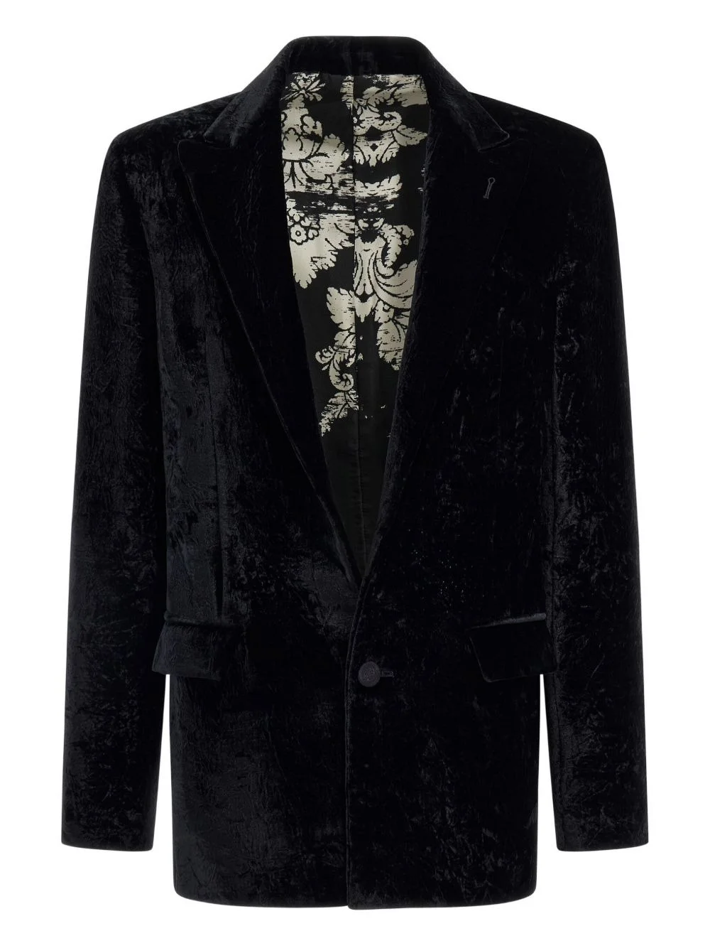 single-breasted blazer Highlights - Black - Front button fastening - Two side flap pockets - Long sleeves Made in Italy Composition Outer: Viscose 80%, Silk 20% Lining: Silk 100% Washing instructions Dry Clean Only