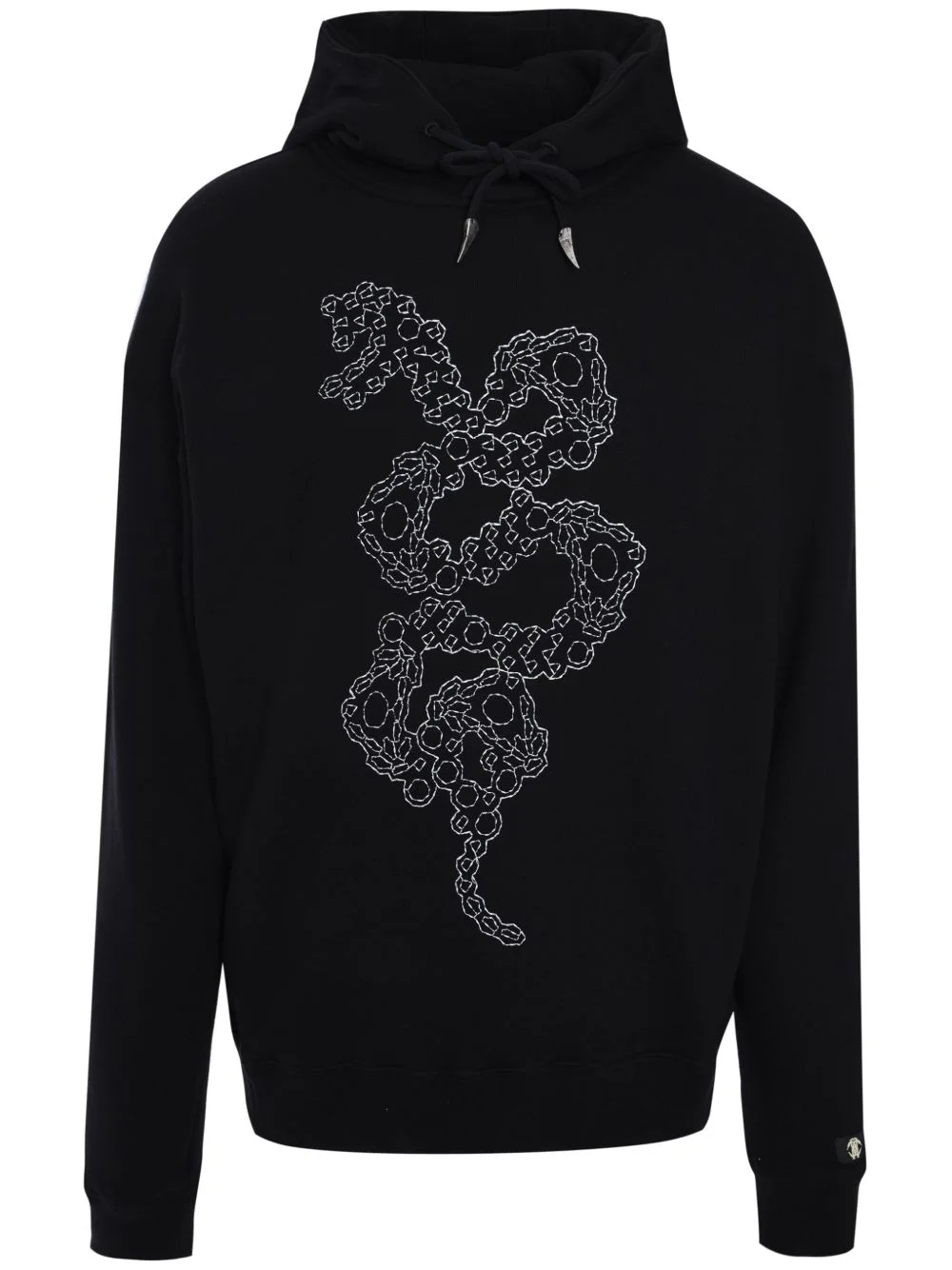 snake-stitch hoodie Highlights - Black - Cotton - Jersey fleece - Classic hood - Drop shoulder - Long sleeves - Logo patch at the sleeve - Embroidered motif - Ribbed cuffs and hem Made in Italy Composition Cotton 100% Washing instructions Read Manufacturer Guidelines