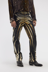 ID: RMJ211-DXI34-09000 Details - Slim fit jeans with Ray of Gold print - Gold - Male - Made in Italy Care & maintenance External fabric:97% Cotton, 3% Elastane / Lining:65% Polyester, 35% Cotton
