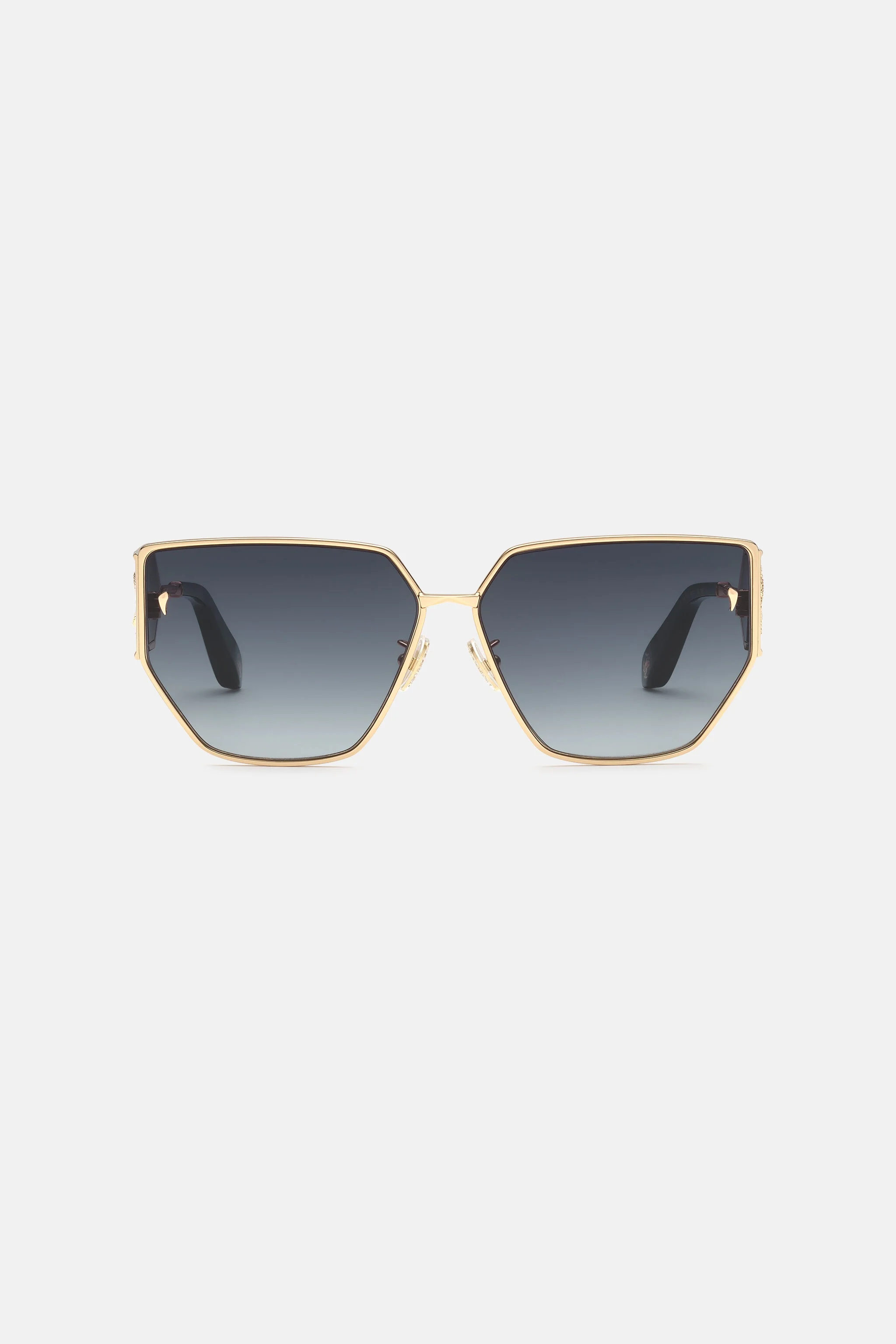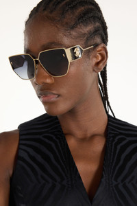 ID: ALD026-ID183-D9937 Wide shape of the metal front, feminine look. The lenses are flat and are the protagonist of the front, embellished with two small fengs. Mirror snake logo, snake skin detail on the temples. Details - Sunglasses Roberto Cavalli - Mirror snake Collection - Temples with metal mirror snake logo - Made in italy - Lenses 64mm Bridge 13mm Temples 140mm - ID: SRC09264300F Care & maintenance Composition:Nichel, Polybutylene terephthalate, Acetato