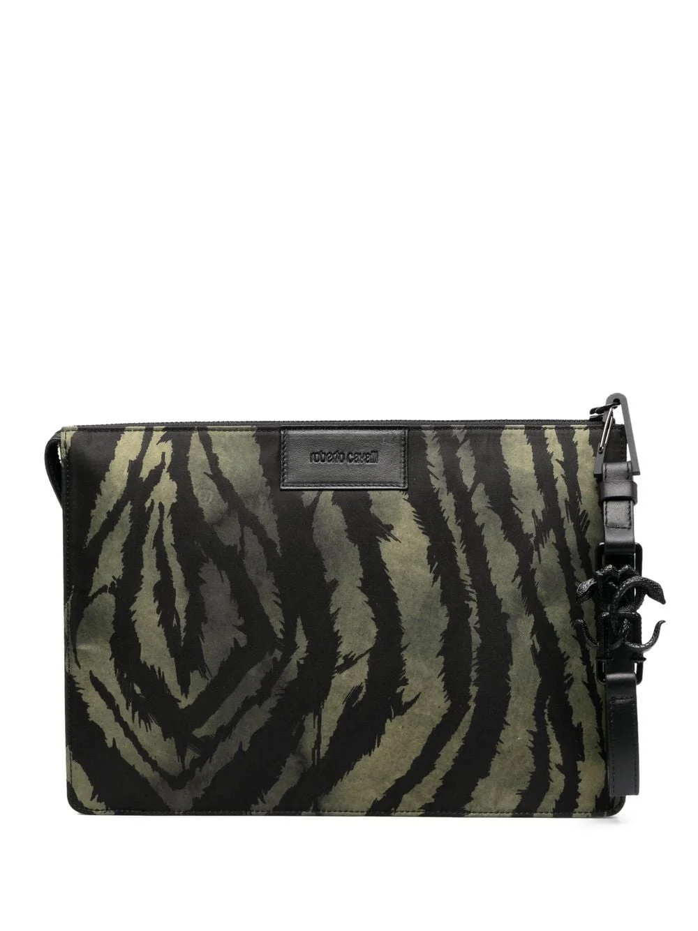 tiger-print leather pouch Highlights - Black/olive green - Calf leather/cotton - Tiger print - Logo plaque - Logo patch to the rear - Top zip fastening - Detachable wrist strap - Main compartment Made in Italy Composition Bos Taurus 100% Outer: Polyamide 100% Lining: Cotton 100% SIZE & FIT Model measurements Height 6 ft 2 in(1.88 m) Bust/Chest 35.03 in(89 cm) Hips 35.82 in(91 cm) Waist 27.95 in(71 cm)