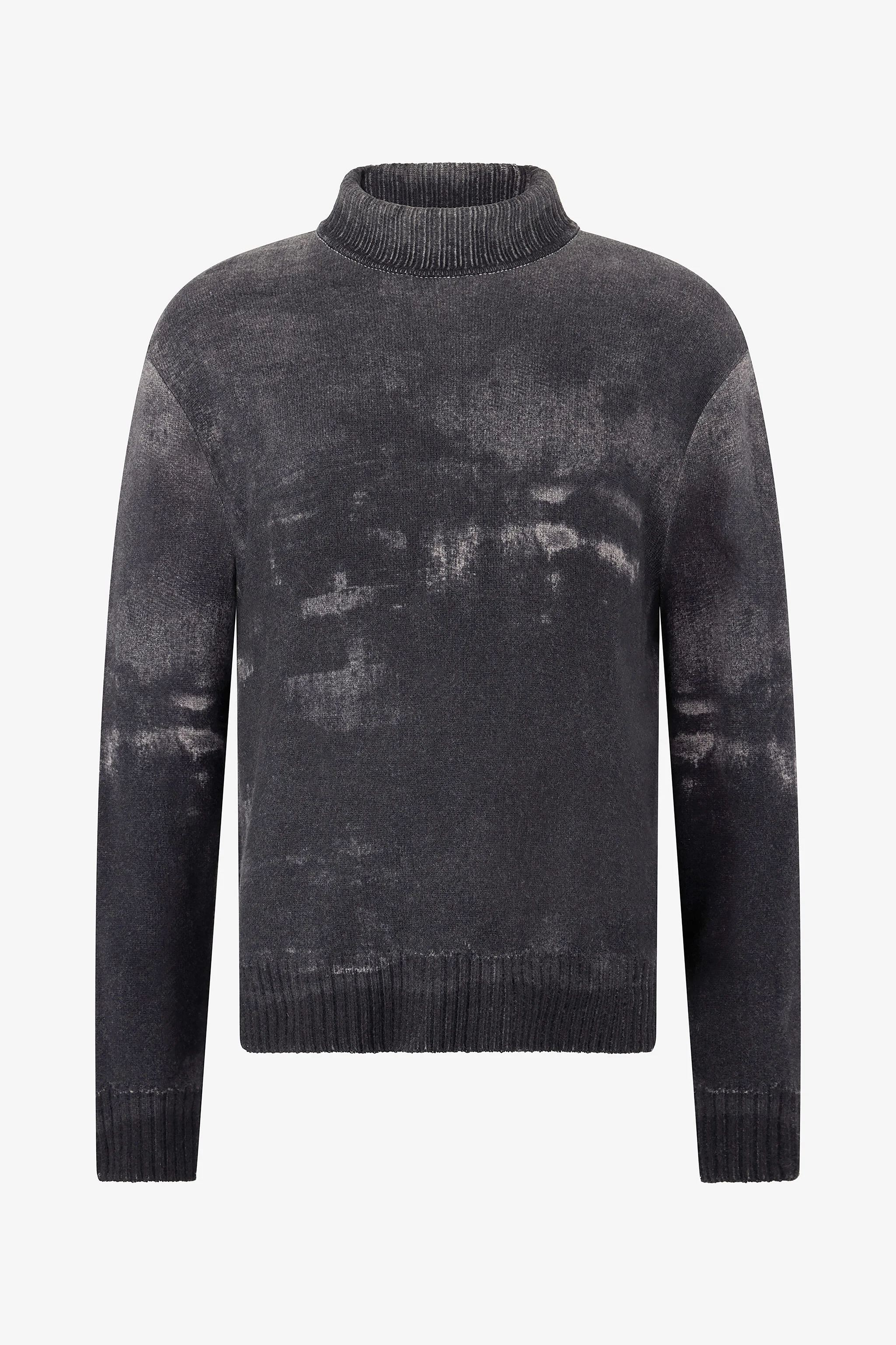 ID: VNM650-MQ036-05014 A timeless classic in the men’s wardrobe, reimagined in the Roberto Cavalli style: this turtle-neck sweater made of pure wool is characterized by a gradient pattern with a used effect, and is completed by a rib knit on the neck, cuffs and hem. Details - Pure wool sweater - High neck - Long sleeves - Used-effect gradient motif - Rib-knit neck, cuffs and hem
