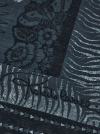 zebra-pattern logo-detail shawl Highlights - Dark grey - Zebra pattern - Floral print - Logo detail - Fringed trim - Square shape Made in Italy Composition Modal 90%, Cashmere 10% Washing instructions Do Not Wash/Do Not Dry Clean