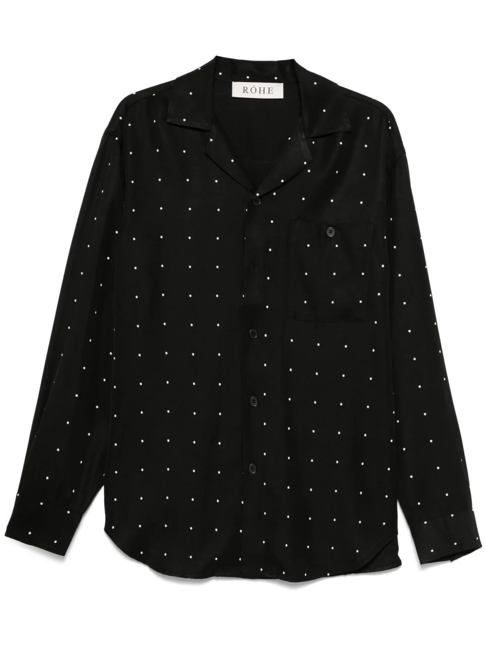 polka-dot shirt Highlights - Black - Front button fastening - Buttoned cuffs - Chest patch pocket - Curved hem Imported Composition Viscose 60%, Lyocell 40% SIZE & FIT Model measurements Height 6 ft 2 in(1.87 m) Bust/Chest 36.41 in(92.5 cm) Hips 35.43 in(90 cm) Waist 29.52 in(75 cm) FittingInformation Designed to be unstructured, offering a loose fit throughout Made from a midweight non-stretch fabric