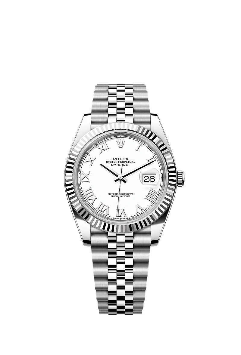 Oyster, 41 mm, Oystersteel and white gold Reference126334 Make a date of a day This Oyster PerpetualDatejust 41inOystersteel and white goldfeaturesa whitedial anda Jubileebracelet. Fluted bezel A Rolex signature The Rolex fluted bezel is a mark of distinction. Originally, the fluting of the Oyster bezel had a functional purpose: it served to screw the bezel onto the case helping to ensure the waterproofness of the watch. It was therefore identical to the fluting on the case back, which was also screwed onto the case for waterproofness, using specific Rolex tools. Over time, the fluting became an aesthetic element, a genuine Rolex signature feature. Today the fluted bezel is a mark of distinction, in gold on this Datejust 41. White dial Limitless freedom Lacquer combines almost limitless freedom of colour with intensity and a smooth finish. The lacquering technique consists of successively depositing six thin layers of lacquer on a brass base plate. A colourless varnish is then applied to give the colour or shade all of its depth and shine. Once the varnish is dry, the surface of the dial is polished to magnify the colour; the dial is then ready to be pad printed and receive its appliques. White Rolesor A meeting of two metals Gold is coveted for its lustre and nobility. Steel reinforces strength and reliability. Together, they harmoniously combine the best of their properties. A true Rolex signature, Rolesor has featured on Rolex models since the early 1930s, and was trademarked as a name in 1933. It is one of the prominent pillars of the Oyster collection. The Jubilee bracelet Supple and comfortable The design, development and production of Rolex bracelets and clasps, as well as the stringent tests they face, involve advanced high technology. And, as with all the components of the watch, aesthetic controls by the human eye guarantee impeccable beauty. The Jubilee, a supple and comfortable five-piece link metal bracelet, was designed and made especially for the launch of the Oyster Perpetual Datejust in 1945.
