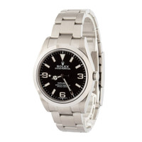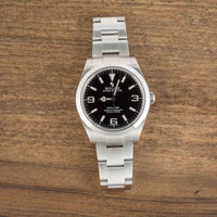 Why We Love This Watch Pre-owned Rolex Explorer ref. 214270 (2018) with the desirable Mark II dial offers a refined take on one of Rolex’s most iconic tool watches. The updated 39mm case features fully lumed Arabic numerals at 3, 6, and 9 for improved legibility, paired with a sleek black dial and classic Mercedes hands. Rugged yet sophisticated, this Explorer is built for everyday wear with timeless appeal. WATCH DETAILS BRAND Rolex MODEL NAME Explorer MODEL NUMBER 214270 YEAR 2018 ITEM NUMBER 180555 CONDITION Excellent GENDER Mens BOX & PAPERS Box and Papers CASE MATERIAL Stainless Steel CRYSTAL Sapphire SIZE 39MM BEZEL Stainless Steel Smooth SERIAL 42886XXX DIAL Black w/ Arabic hour markers, Chromalight hands & Chromalight lume MOVEMENT CALIBRE 3132 TYPE Automatic BEZEL Fixed COMPLICATION No Date BRACELET MATERIAL Stainless Steel TYPE Oyster CLASP Oysterlock