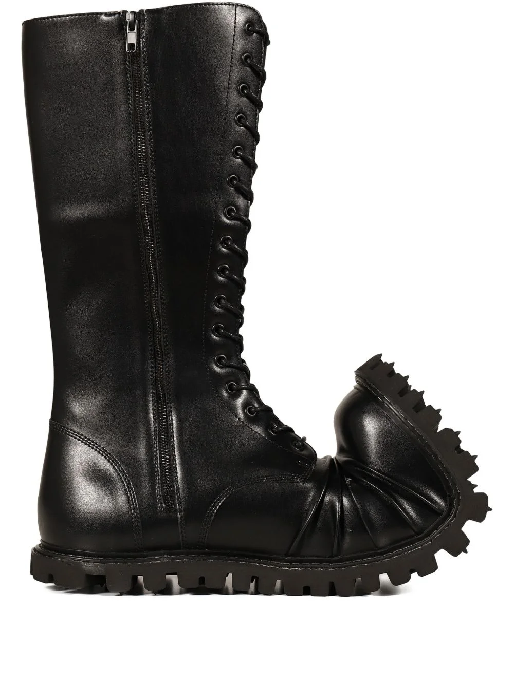 lace-up lug-sole boots Highlights - Black - Lace-up fastening - Side zip fastening - Lug sole Imported Composition Outer: Polyurethane 100% Lining: Polyurethane 100% Sole: Rubber 100%