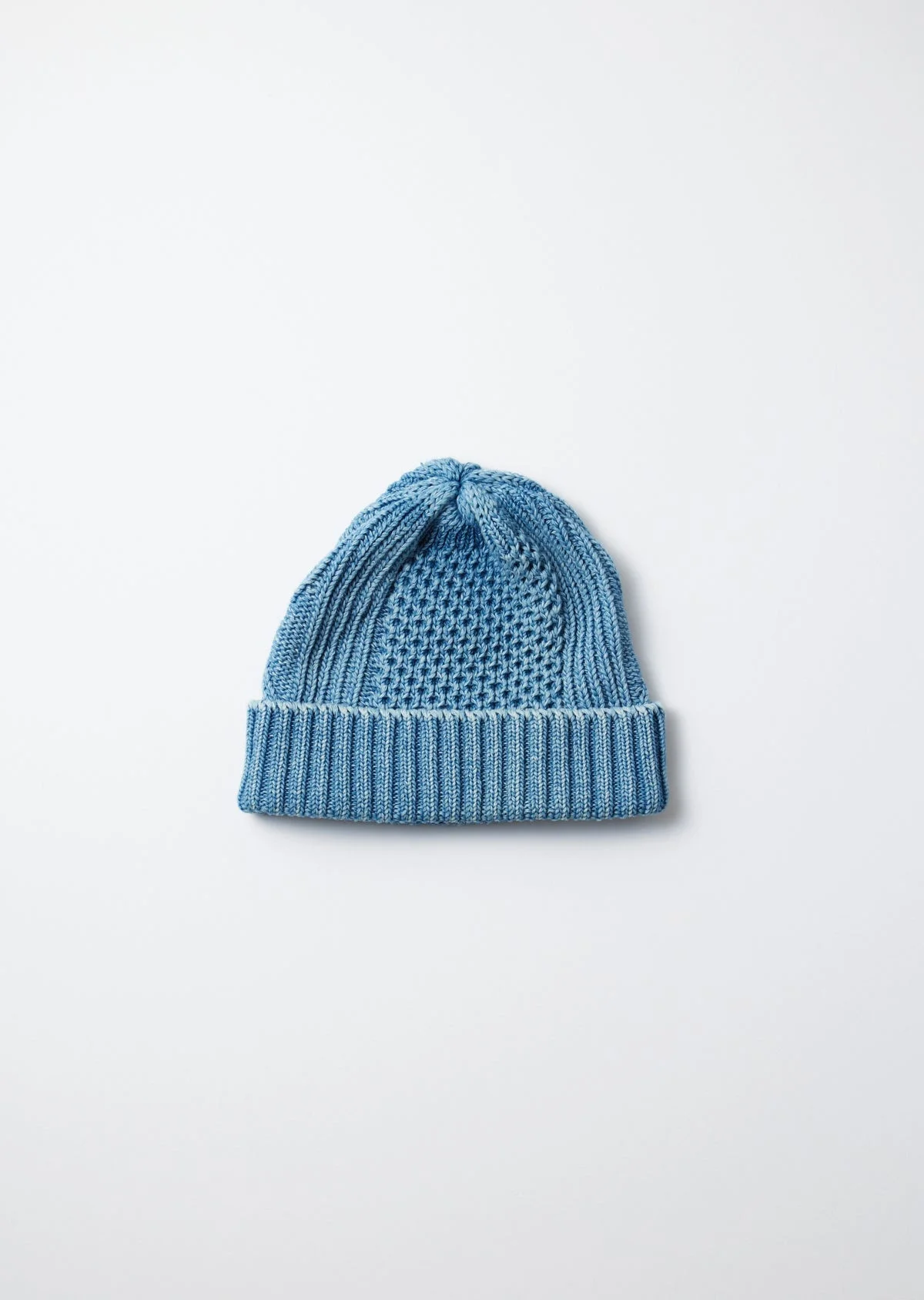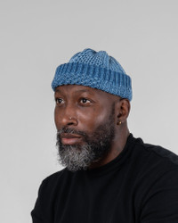 Made in Japan by ROTOTO, this 100% cotton, single-fold beanie is knitted with an Aran Cable-style weave. This traditional Irish knitting technique adds heft and texture to the fabric, creating a warm, comfortable beanie for the colder season. The yarns used in the weave are indigo-dyed, allowing the appearance to fade and evolve with wear. A character-filled beanie, shown here in light indigo, with additional colour options available. Made by ROTOTO High quality knitwear, crafted in Japan using premium yarns and traditional knitting techniques. ROTOTO - Aran Cable Hat - One size - 100% Cotton - Indigo dyed - will fade with wear and washing - Aran Cable-style knit Single fold hem - Avoid tumble drying as this may cause shrinkage