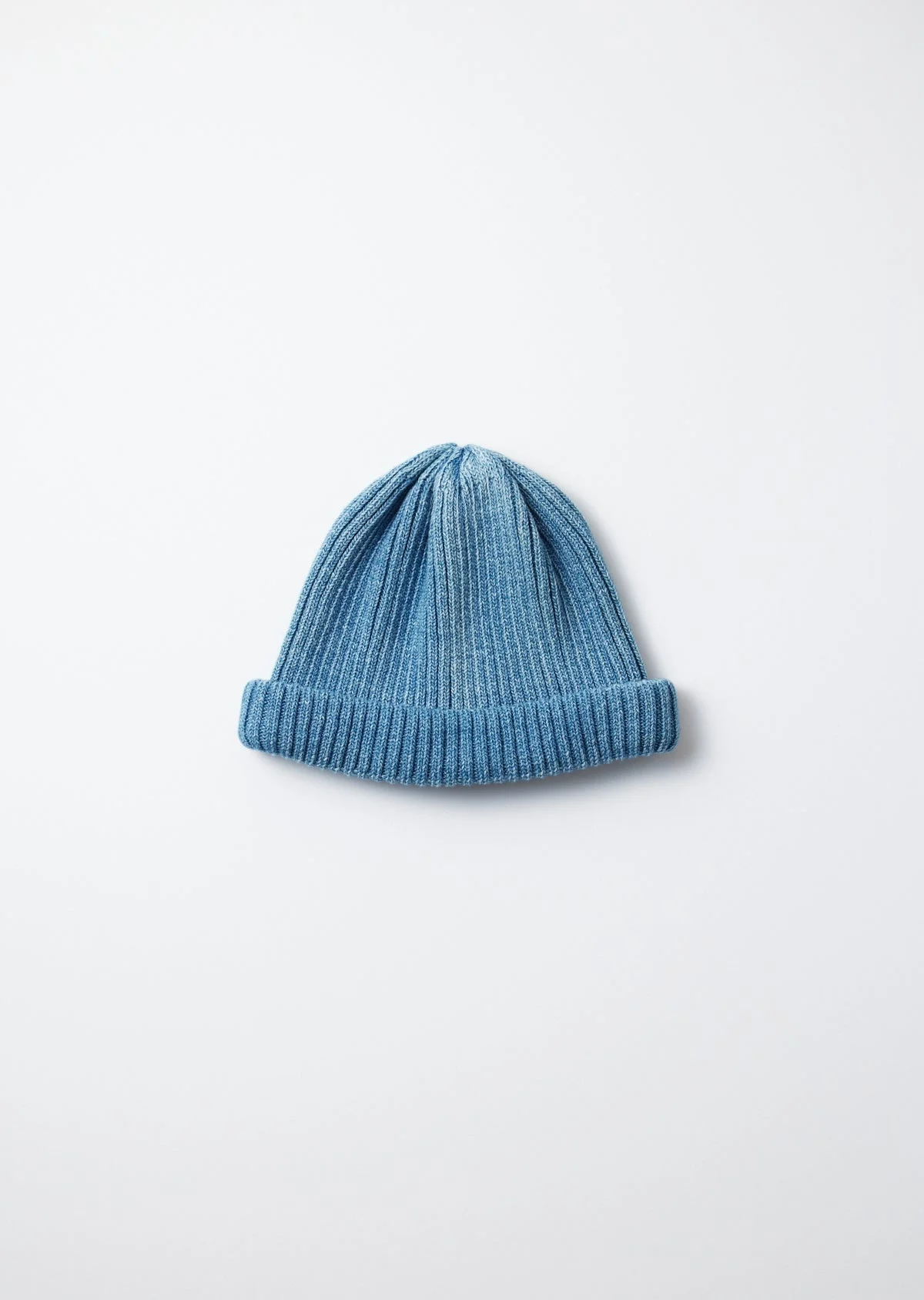 Made in Japan by ROTOTO, this version of their popular roll-up beanie has been knitted with indigo-dyed yarns, allowing the fabric to fade and evolve with wear—just like denim. Made from 100% cotton, the design offers a shallow fit intended to sit just above the ears. Knitted with a two-by-two rib stitch, the fabric provides excellent stretch and comfort, finished with a roll-up hem to add volume and create a timeless look. A classic beanie for all seasons, shown here in light indigo, with additional colour options available. Made by ROTOTO High quality knitwear, crafted in Japan using premium yarns and traditional knitting techniques. ROTOTO - Cotton Hat - One size - 100% Cotton - Two-by-two ribbed knit - Roll-up hem - Avoid tumble drying as this may cause shrinkage