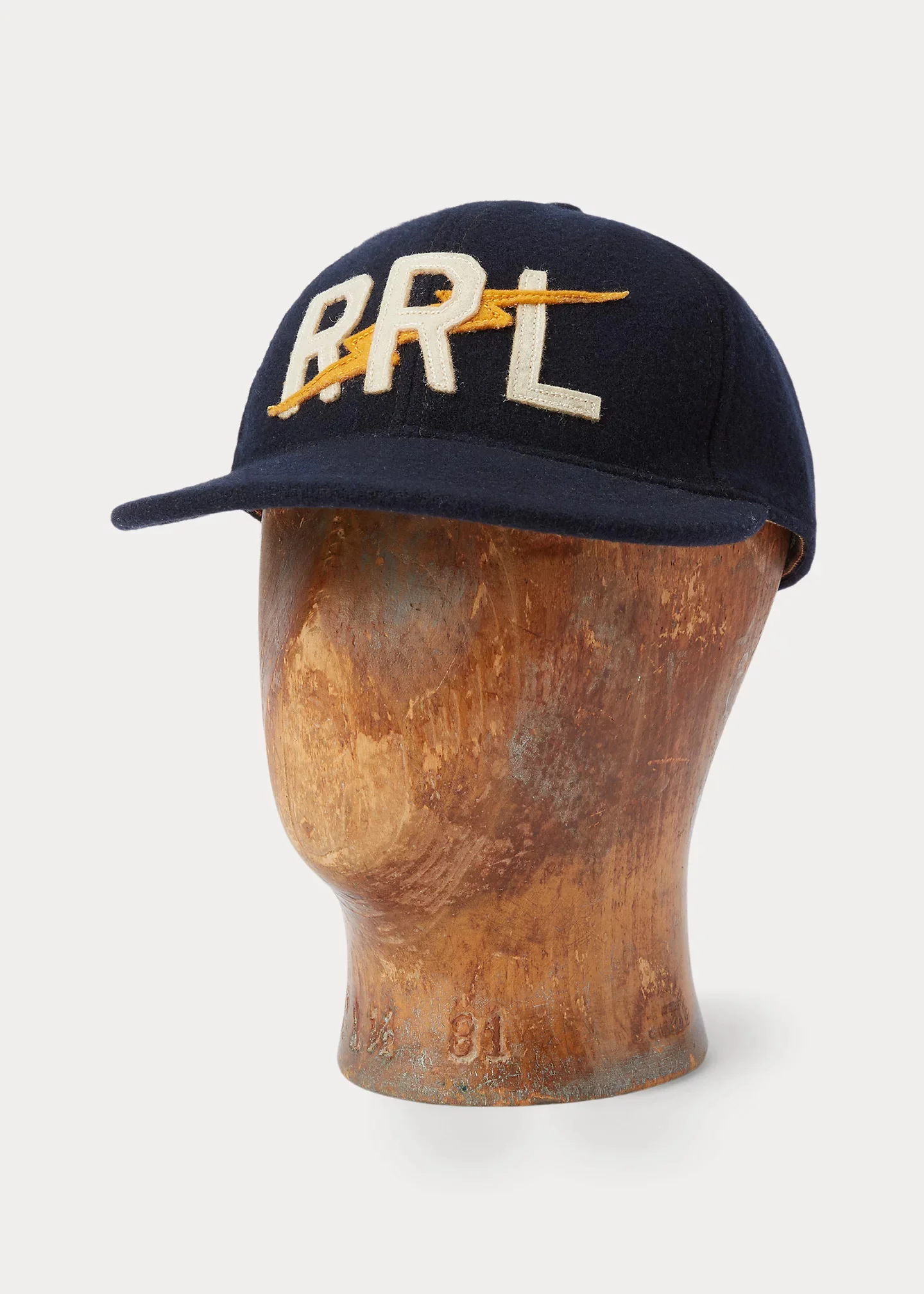 Made with wool-blend felt. "RRL" logo and a lightning bolt appliquéd at the front. Leather sweatband. Lined with satin. Signature green underbill. Leather strap at the back with an antiqued brass buckle. DETAILS - Seamed bill. Signature green underbill. - Six-panel construction. - Leather sweatband. Lined with satin. - Felt "RRL" and lightning bolt patches at the front. - Adjustable leather strap at the back with an antiqued brass buckle. - 22.75" inner circumference. - Shell: wool, viscose. Lining: polyester. Underbill: cotton. Sweatband and strap: leather. - Dry clean. - Imported. Style Number: 648513