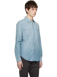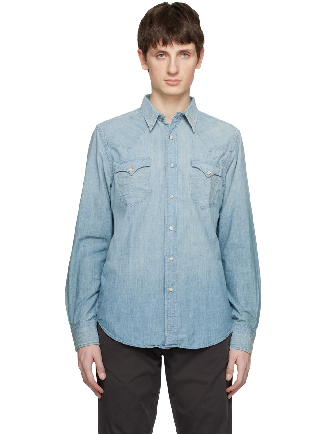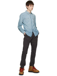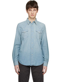 Cotton chambray shirt. · Spread collar · Press-stud closure · Embroidered detailing at flap pockets · Shirttail hem · Three-button barrel cuffs · Mother-of-pearl hardware Supplier color: Davey wash