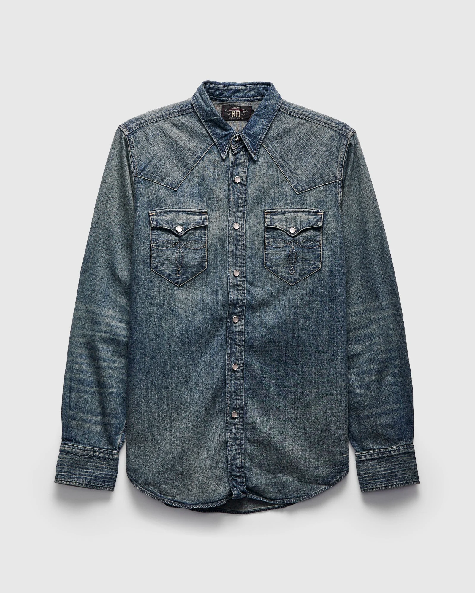 Details This classic western shirt from RRL is built using a rugged indigo-dyed denim. Inspired by vintage workwear, RRL utilizes decades of fashion industry experience to carefully replicate the look and feel of a well-worn denim shirt. Equipped with two pockets at the chest, a metal concho button at the neck, and western-style front and back yokes to round out the aesthetic. - Regular fit - Built from lightweight indigo-dyed denim - Two western patch chest pockets - Mother of pearl snap buttons - Concho shank closure at neck - Stitched RRL label on placket interior - 100% cotton Brand Info Named after his beloved Colorado ranch, RRL by Ralph Lauren is the legendary designer's homage to the American West. Founded in 1993, the label employs the vast resources of the Ralph Lauren Corporation to create stunning renditions of heritage-inspired garments.
